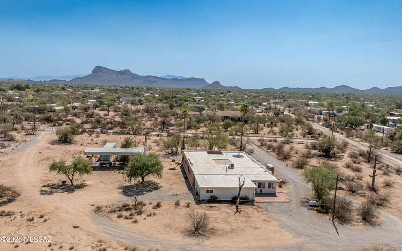 Rare fine - fabulous value. Older custom home on 2 acres w/ attached garage, workshop + RV length covered carport & storage shed. Flat land, fully fenced - plenty of room for horses. Avra Water, septic, electric and leased propane tank. Roof was replaced several years ago - a new membrane was laid. Cummings Plumbing re-plumbed the home roughly 2 years ago. All kitchen appliances convey along w/washer & dryer. Great workshop in garage. Arizona Room, Bonus Room + multi living areas. Only steps in home is a step down to living room- the rest of the home is flat. Duct work for swamp cooler or AC is in ceiling. Currently has mini split & window AC. Chain linked fencing is big value along w/past replaced roof & replaced plumbing. Interior does need updating which can be done at any time.