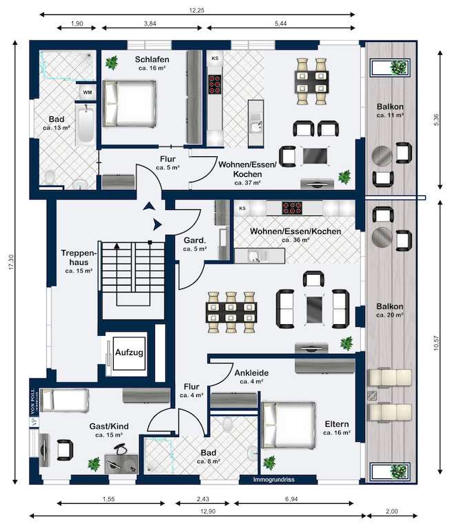 We are delighted to present this new-build project to you: An exclusive residential complex on a quiet plot with a view of Bultkamp Park. A total of 3 houses are being built here, each with 5 high-quality condominiums. This project offers various apartment sizes with well thought-out floor plans ranging from approx. 53 m² to approx. 91 m² of living space and varying numbers of rooms from 1 to 3 rooms. DESCRIPTION CONDOMINIUM | HOUSE 1 | APARTMENT 2 | FIRST FLOOR RIGHT This apartment is located in House 1 on the first floor and has a bedroom, a spacious bathroom with walk-in shower and an open-plan kitchen with dining room and lounge area. On the adjoining terrace with a small garden, you can enjoy the hours of sunshine with family or friends and enjoy the peace and quiet of this high-quality residential area. A highly efficient air heat pump and a solar thermal system are planned to ensure a sustainable heat supply and resource-conserving living. All apartments are heated via underfloor heating. The exact features of this project can be found in the construction and service description. We will be happy to send you these documents on request. Have we aroused your interest? We would be happy to provide you with detailed information about this property and its prospects in a personal meeting.