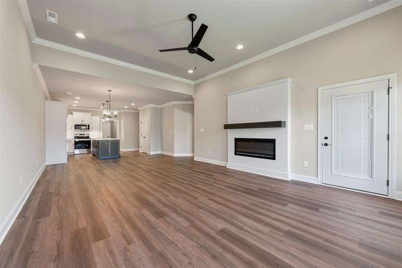This beautifully executed townhome showcases one level luxury living featuring quartz countertops, custom cabinetry, tile backsplash, stainless appliances and under cabinet lighting in the kitchen. The living room boasts IVT throughout, a tray ceiling, & an eye-catching electric fireplace. The en-suite showcases tile flooring, a large walk in tile shower, walk in closet, & granite countertops. Both the front & back patio is covered and the back features an additional poured patio for entertaining. Schedule your showing today.