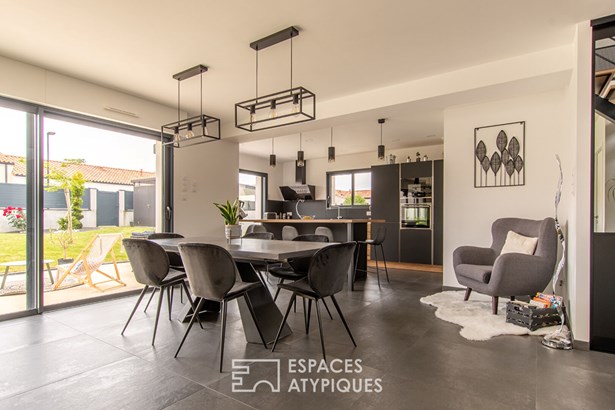 In the town of St Macaire en Mauges, this architect-designed house offers 147 sqm of living space on a 450 sqm plot.