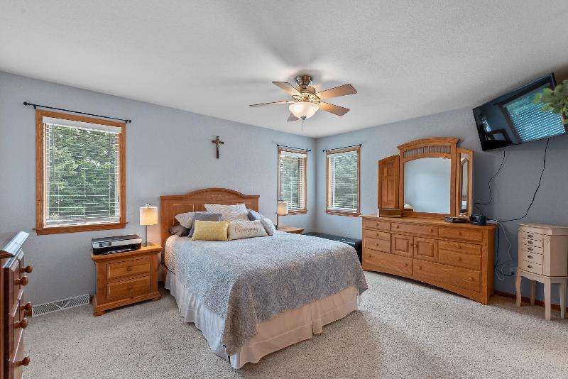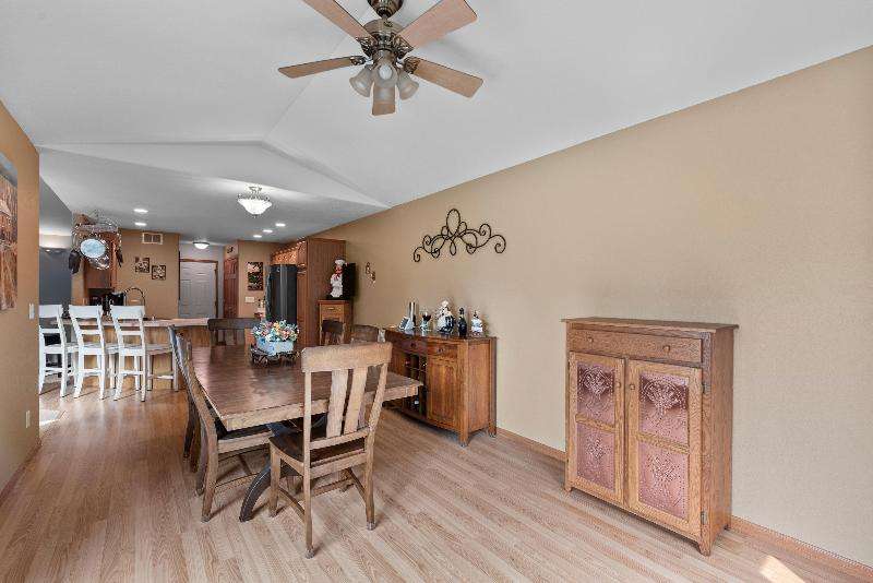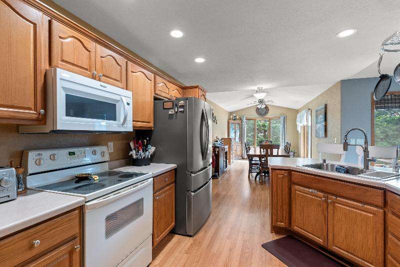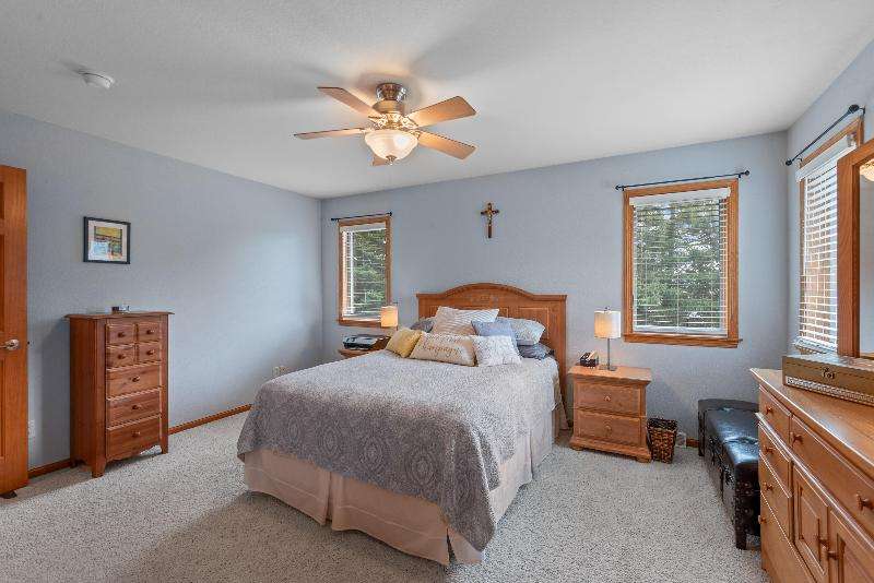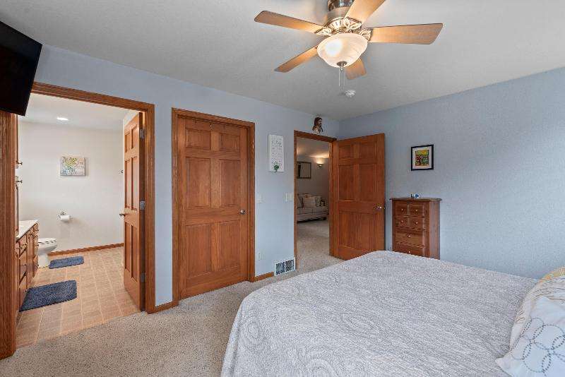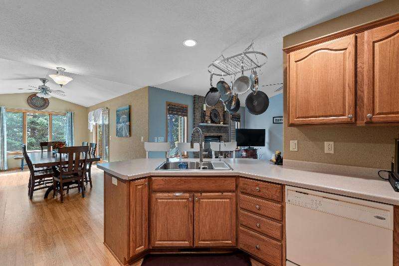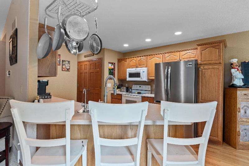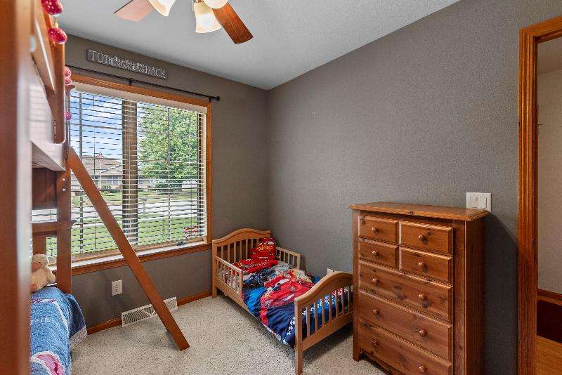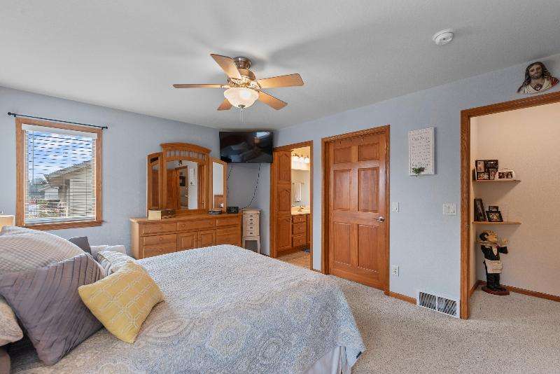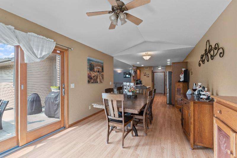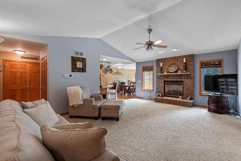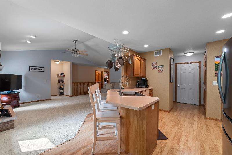 Welcome to your next home featuring a New Roof and garage door. A zero-entry garage, and convenient first-floor laundry makes daily living a breeze. The main level offers an open layout with a kitchen that includes handy cabinet pull-outs, a cozy living room with fireplace, a dining area that fits a table for eight and flows right out to your backyard patio--perfect for relaxing or entertaining. You'll find two bedrooms on the main floor, including a primary suite with a walk-in closet and walk-in shower. Head downstairs and you'll love the spacious rec room with a wet bar area--great for movie nights, game day, or just hanging out. There's also a third bedroom and a full bathroom with a large jetted tub for when you really want to unwind. Don't miss the Zoned heating in the lower rooms!