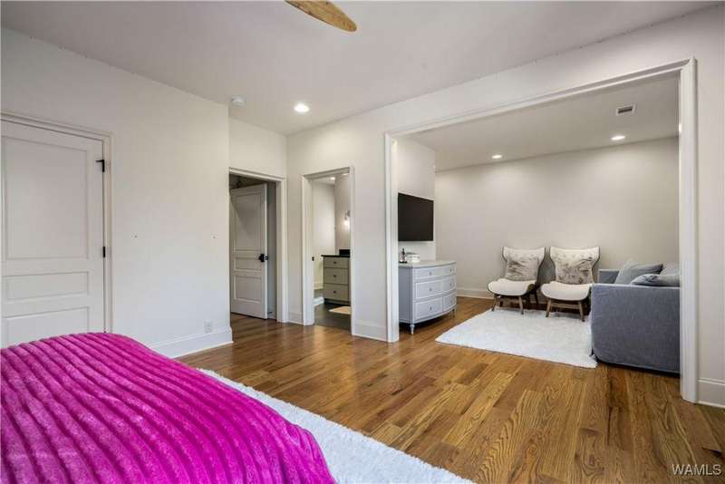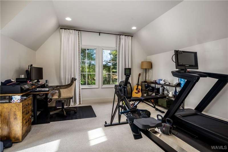 This luxurious 6,686 sq ft home boasts 7 spacious bedrooms and 6.5 elegant bathrooms in Tuscaloosas sought-after Highgrove neighborhood. The main level features a stunning primary suite and an additional bedroom, for guests, multi-generational living, or a nursery. The second level includes four additional bedrooms with living space, and a separate staircase leads to a suite complete with a living area, bar, beverage fridge, and full bath?an ideal retreat or man cave. The estate lot offers an enormous, out of sight backyard with a covered patio, wood-burning fireplace, sauna, garden, basketball hoop, and in ground trampoline. Inside, enjoy premium lighting fixtures, quartz countertops, built in refrigerator, walk-in closets throughout, an office, and a beautifully designed laundry room.