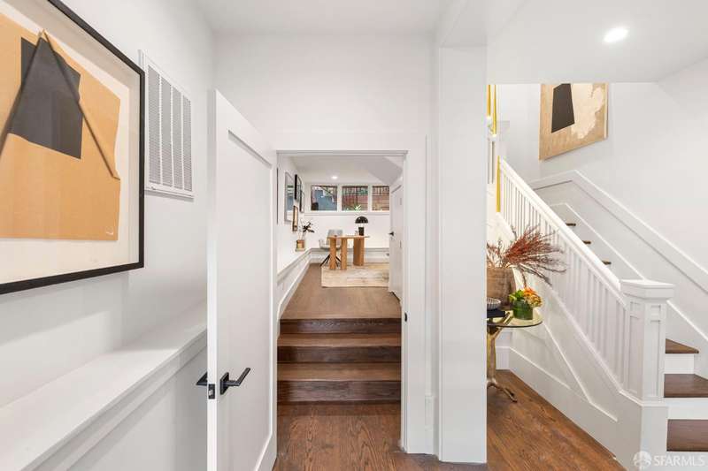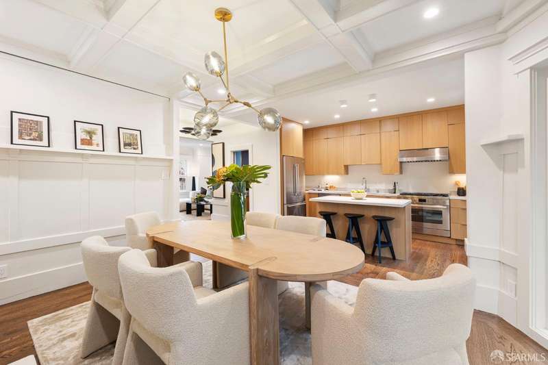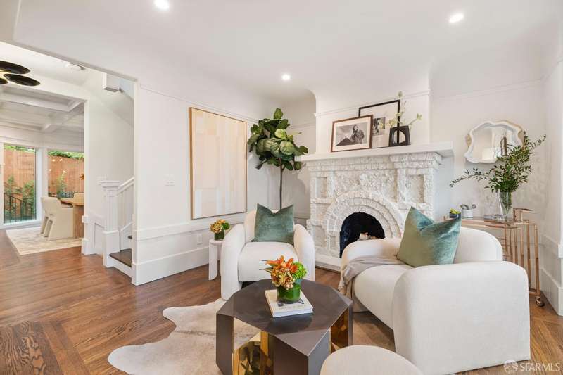 Commanding the block after a 2025 renovation, this moody Edwardian rises in Dolores Heights, one of San Francisco's most coveted hillside enclaves known for leafy streets & cinematic views. Three generous levels unfold w/grand scale & sophistication. The main entertaining level is anchored by a 25' full-width living room, two fireplaces, a grand dining room, all while being bathed in abundant natural light. The impressive entertainer's kitchen features a professional-grade Bosch appliance suite & a layout designed for both culinary ambition & everyday ease. This level also has direct access to the lush, private garden. Upstairs, three serene bedrooms serve as private retreats, each with custom wardrobes, & desirable outlooks. Every bathroom evokes a boutique-hotel experience, w/ single-slab honed Viola marble vanities, imported tiles, & premium Grohe/Duravit fixtures. The fourth bedroom on the main level offers versatility for guests, media, or an inspiring garden-side office. Outside, the garden unfolds as a true urban refuge, featuring an outdoor kitchen, professionally-designed garden beds, & a doggy relief area. Smart home updates include: Lutron dimmable lighting, WiFi appliances, Eero WiFi network, & Nest video entry, ensure the home lives as smart as it looks.