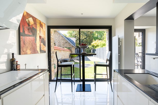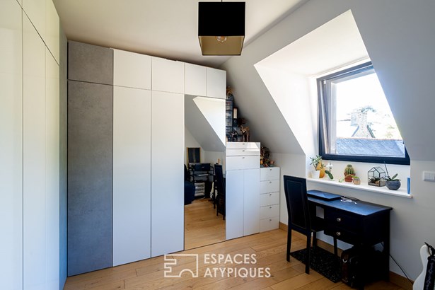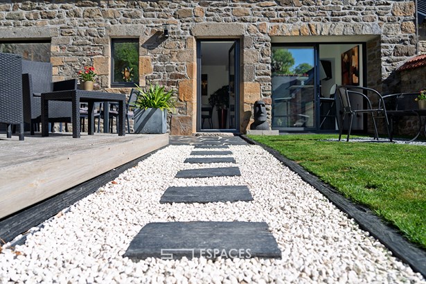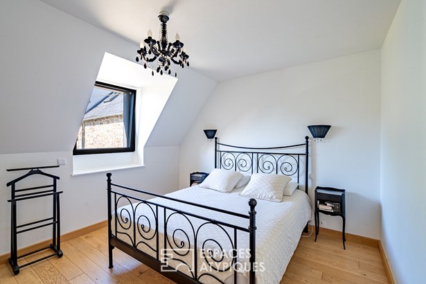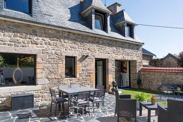 At the crossroads between Bohars and Lambezellec, this charming house of approximately 85 sqm, completely renovated, offers a warm and authentic living environment. From the entrance, the tone is set: the exposed stones, some of which come from old religious buildings, give this place a unique and timeless soul. The ground floor is organized around a cozy living room, enhanced by a fireplace, perfect for winter evenings. The kitchen, fitted and equipped, combines functionality and aesthetics in a friendly spirit. Upstairs, two comfortable bedrooms share an elegant bathroom designed for well-being, with both a bathtub and a shower. Outside, a wooden terrace pleasantly extends the living spaces and is accompanied by a wooden shed, all in a peaceful environment with no vis-a-vis. Between careful renovation, noble materials and old-world charm, this house is a real favorite for lovers of authenticity.