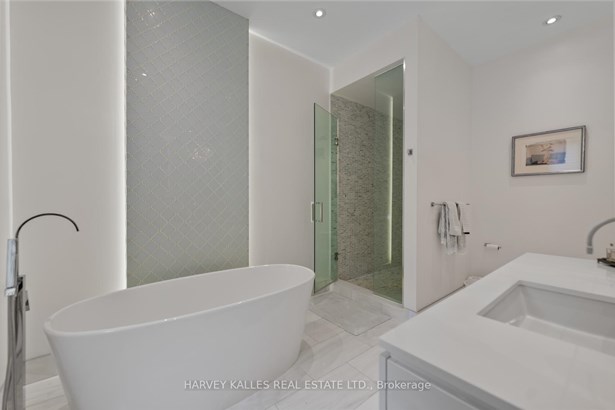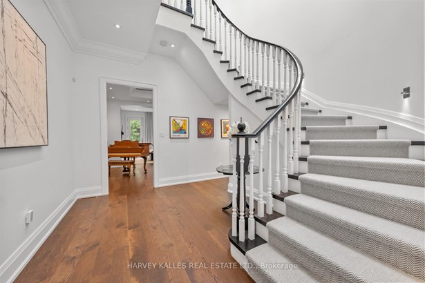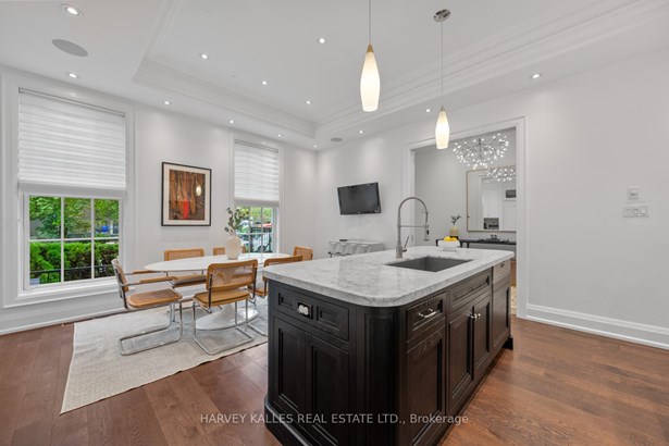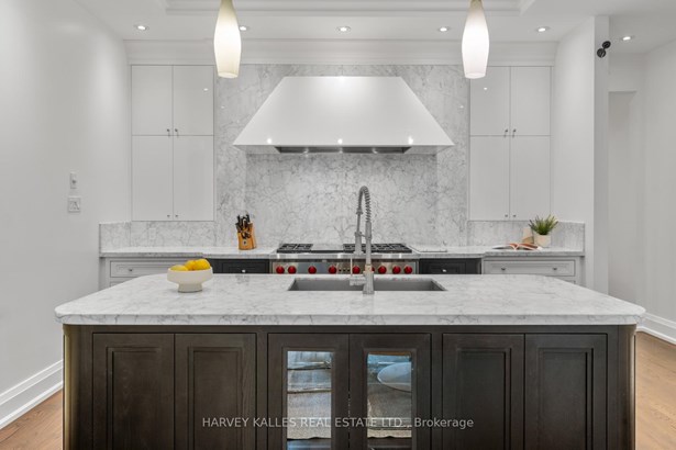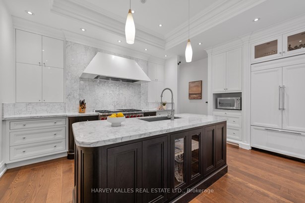 Experience the timeless sophistication of a New York brownstone, reimagined in the heart of midtown Toronto. This bespoke builders own residence showcases hand-finished limestone architecture and over 4,200 sq. ft. of interiors defined by 11 main floor ceilings, elegant proportions, and meticulous craftsmanship. An inviting marble mosaic entry hall introduces the home, where elegant French pocket doors reveal the chefs kitchen. At its centre, bespoke cabinetry is paired with book-matched marble, a large island, and a sun-filled breakfast area. A discreet walk-through pantry offers abundant storage along with a wine fridge, bar, and display. Expansive glass doors extend the living space to a private deck and landscaped yardideal for both refined entertaining and everyday living. Elegant curves throughout, including a sweeping staircase, lend architectural drama, while solid core wood doors and a built-in Bose surround system underscore the homes quiet luxury. A dedicated space alongside the staircase also allows for the addition of a private elevator. Upstairs, with soaring 10 ceilings, the oversized primary suite is a sanctuary complete with an expansive dressing room and dual spa-inspired ensuites joined by a dramatic walk-through shower. Two additional bedroomseach with its own ensuitecomplete this level, including one with a private study ideal for a home office, reading nook, or serene retreat. The versatile lower level features a bright recreation room/gym, guest bedroom, full bath, laundry, and direct access to the double garage. This home delivers a rare blend of convenience and sophistication. Perfectly positioned close to synagogues as well as Torontos elite public and private schools, this residence offers both lifestyle and locationjust moments from downtown. A residence of rare distinction for those who value timeless design, craftsmanship, and modern comfort.