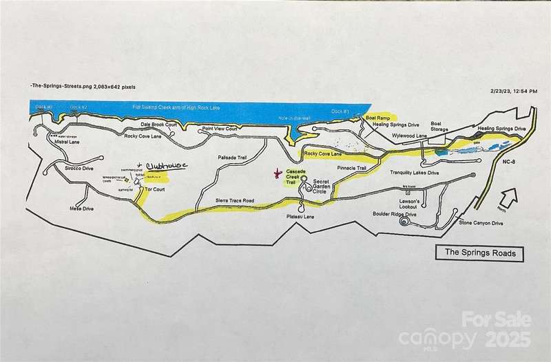Dream Home Location! Nestled within the Uwharrie National Forest & atop High Rock Mtn, natural beauty abounds in the gated community of The Springs. It's a must see! This private, 2.32 ac cul-de-sac lot is suitable for a sweeping ranch or walk-out basement. The back of the property faces a beautiful vista of lake & mtn views & could be completely unobscured from a 2nd story elevation. The front of the property faces the cul-de-sac firepit, encircled w/stone seating for a fun evening of s'mores! Nature lovers, you're bound to see wildlife on your short walk to the pond or the Cascading Creek fireplace & outdoor grilling area. A quick, golf cart drive to the Clubhouse boasts many amenities: pool, hot tub, tennis & pickle ball courts. There's a boat launch & fenced boat/trailer storage included w/HOA. The timber-framed clubhouse, w/cathedral windows, is the perfect place meet new neighbors, shoot pool & simply enjoy the panoramic view of High Rock Lake. Schedule your appointment today!