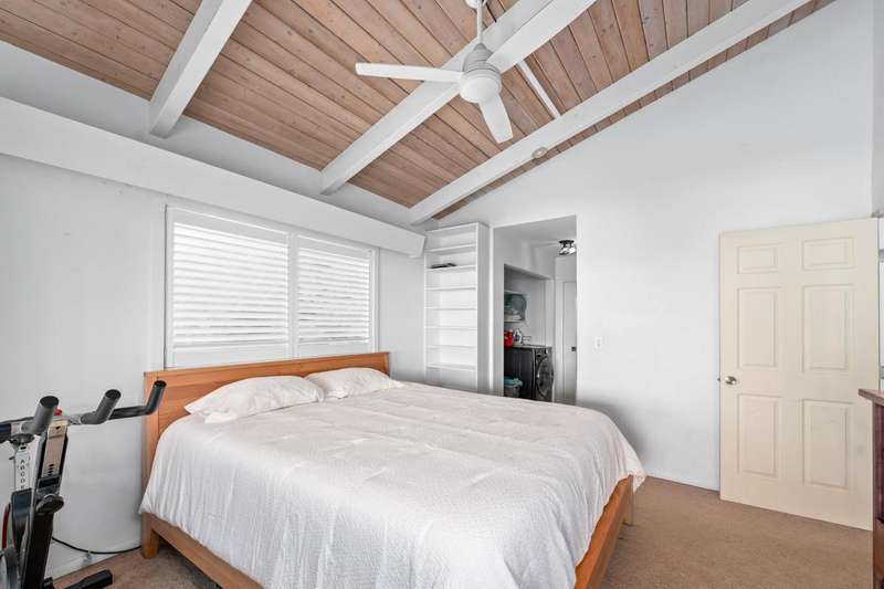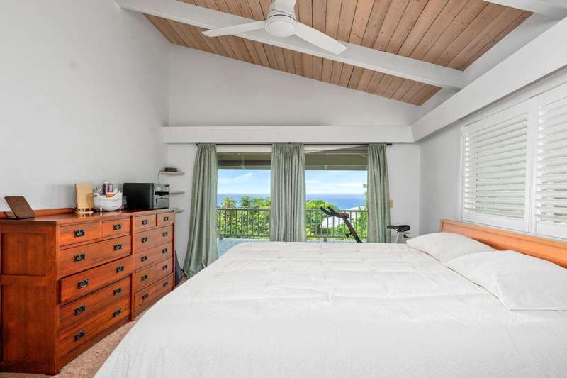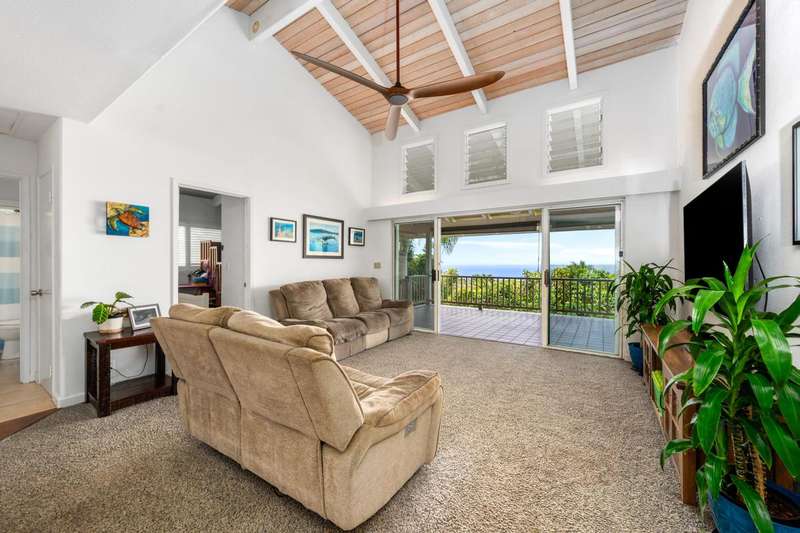 Spacious almost 2,300sf home on a private ~½-acre flag lot with mature trees and a nice grassy fenced yard. Features two separate living areas with ocean views from both levels.