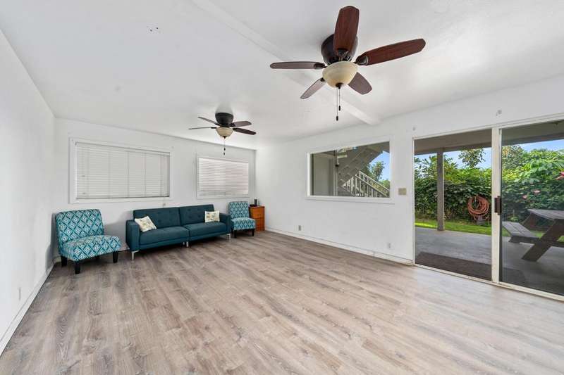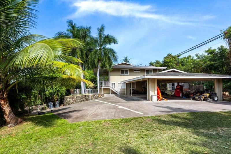 Outdoor Features: Two expansive lanais, Fruiting Mangos, apple bananas, Lime, Samoan coconut… grassy yard, raised garden bed, fenced in back yard area and ample parking with an 864 sq ft carport and cement driveway.