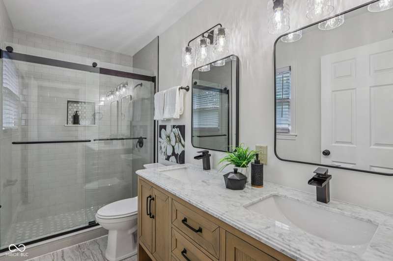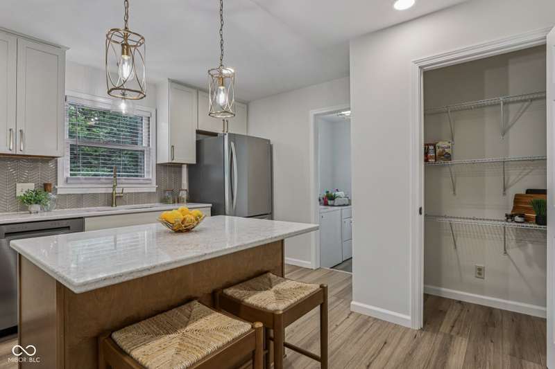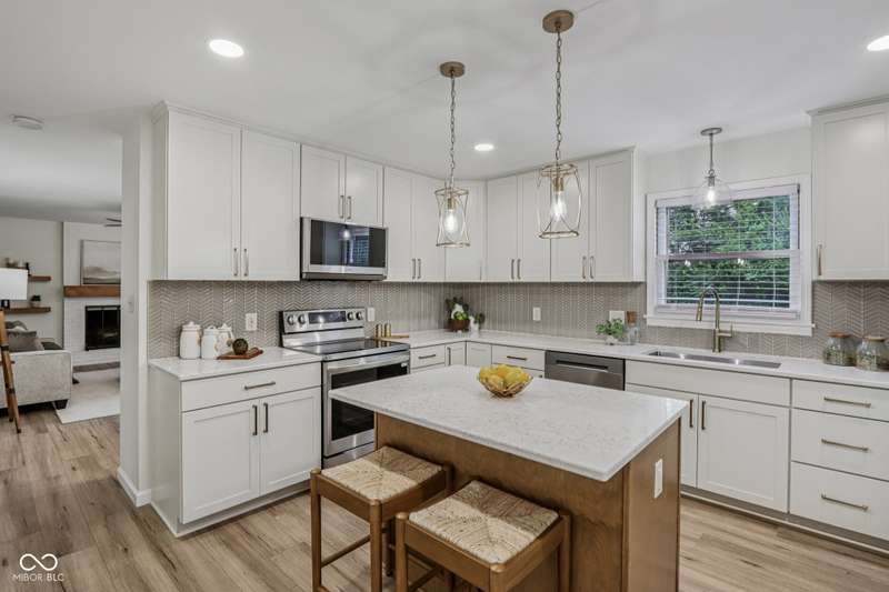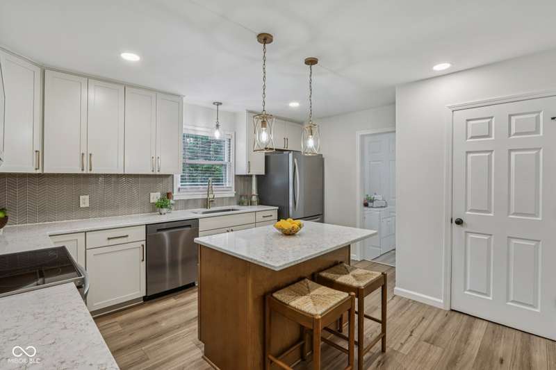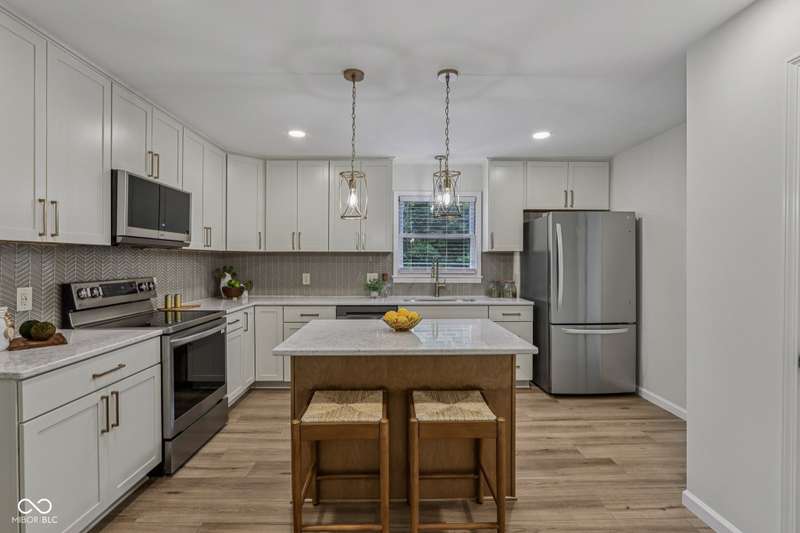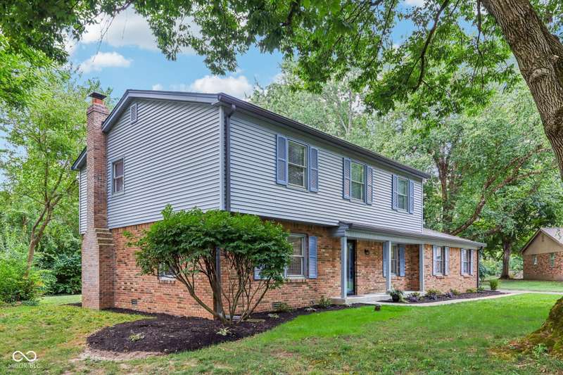 Fully Remodeled Home in Carmel situated in one of Carmel's most peaceful and established neighborhoods. Setting on a wooded 1/2 acre lot surrounded by mature trees for exceptional privacy & tranquility. Seller offering Interest Rate Buydown! Step inside to discover a brand-new Kitchen designed w/function & comfort in mind featuring custom cabinets, quartz countertops, a spacious island w/breakfast bar & a generous sized pantry. New stainless steel Range & a microwave hood, plus Refrigerator & Dishwasher are only 2 years old. Throughout the main level is luxury vinyl plank flooring offering durability & warmth, while the upper level is outfitted with new carpeting throughout. The heart of the home is the Family Room just off the Kitchen, complete w/floating shelves & charming mini bar area-perfect for entertaining or relaxing. A Formal Dining Room, spacious Office w/French doors, & a convenient main-level laundry room (washer and dryer incl) offer flexible spaces to meet your everyday needs. Upstairs the expansive primary suite is a true retreat w/ large walk-in closet & a luxurious en-suite bath featuring fully tiled walk-in shower, new double vanity, & updated lighting. Two additional bathrooms have also been tastefully renovated w/new tile flooring, vanities, & fixtures. Other amenities included in the remodel are All-new light fixtures throughout, Stylish 2" faux wood blinds in every room. An Extra-deep 2-car garage has a bonus side room-ideal for a workshop or storage. Enjoy sitting on your covered front porch or the Beautiful backyard surrounded by trees on three sides for unmatched privacy. There is a great open area in the woods behind the home for kids to play or to enjoy nature. Home also comes w/a 2 yr old full house generator for extra peace of mind. Every inch of this home has been carefully redesigned with attention to detail and comfort in mind. Home is in the Coveted Carmel Clay Schools. Brand new city sewer line, city water.