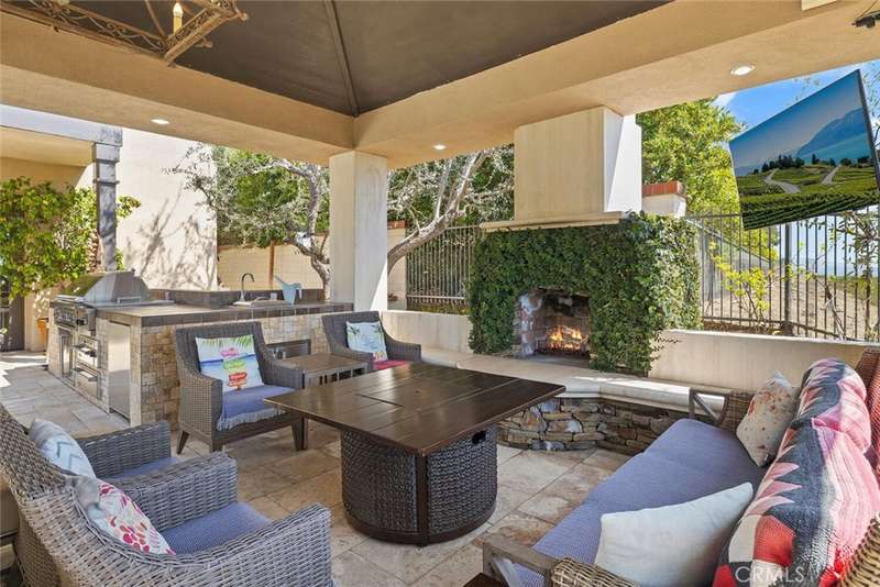 Welcome to 11755 Collar Ave. This luxurious oasis is nestled in one of the most coveted locations within the prestigious 24-hour guard-gated community of Tustin Ranch Estates. This stunning 5,900+ sq. ft. residence offers breathtaking views, mesmerizing sunsets, and picturesque vistas of Catalina Island, all from a peaceful, single-loaded cul-de-sac street. Situated on a sprawling 16,000 sq. ft. lot, the home boasts a seamless blend of elegance and privacy. With its spacious layout, upscale finishes, dual staircase, and panoramic surroundings, this estate invites you to experience an unparalleled lifestyle of comfort and sophistication. This former builder's model home was thoughtfully designed with premium upgrades, offering a luxurious yet comfortable living space. Every detail has been meticulously crafted to elevate the home's elegance, from high-end finishes to custom features, providing an exceptional blend of style and functionality. Whether enjoying the expansive indoor areas or the breathtaking outdoor views, this home delivers an unparalleled living experience. The kitchen is a chef's dream, featuring custom-made cabinetry and ample storage. Equipped with a double oven, built-in refrigerator, and a 6-burner cooktop, this space is designed for both cooking and entertaining with ease. On the first floor, you'll find a primary en-suite, a formal study with a fireplace, a bright family room, a breakfast nook, and a formal living room with an astonishing wood-carved fireplace and cathedral ceilings. A formal dining room and a bar enhance the home's entertainment capabilities. The master suite on the second floor boasts its own viewing balcony, offering stunning ocean and city views. 3 additional en-suite bedrooms & a large playroom cater to the needs of the whole family. The mature front & rear gardens offer a year-round spring-like atmosphere. Additional amenities include a covered patio with stone fireplace, overhead heaters, a ceramic-tiled swimming pool, hot spa, and a fully equipped BBQ area offering a massive grill. The long driveway provides parking for multiple cars. The gold-ribbon award-winning schools, world-class dining and shopping, John Wayne Airport, and freeways are all in close proximity.