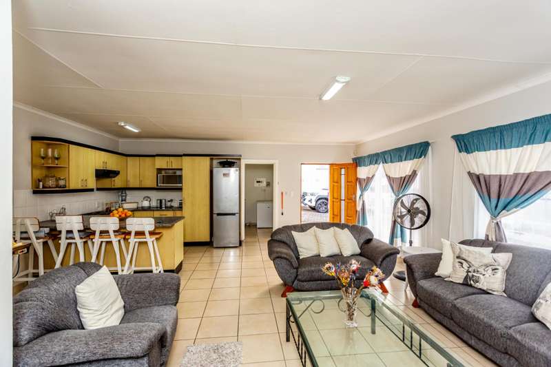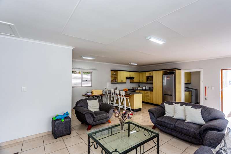 I am pleased to market this lovely big family home, set out on a large level erf, with so much to offer!! Bonnie doon, being a sought after area and close to all the main schools and shops and amenities. It has a completely separate dwelling next to the main house, which consists of 2 bedrooms, 1 bathroom, large open plan area with kitchen, lounge and dining room. (Either for family or to work from home or to supplement your income) The Main house consists of 4 generous size bedrooms, 2.5 bathrooms (1 En suite), Large kitchen, dining area,Main lounge and an Entertainment lounge area with built in braai and bar. Also has an outdoor Entertainment area at the pool area. Single garage. Alarm, beams, security gates and bars Perfect for the Extended family or to work from home! Give me a call today to arrange for an Exclusive viewing!!