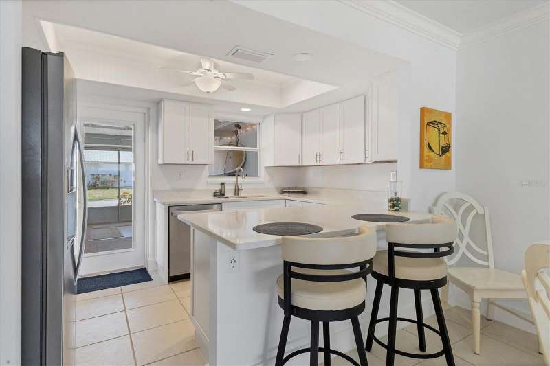 Boater’s Paradise – Canal-Front Villa in Fair Winds Village! Discover the serene canal-front lifestyle in this beautifully renovated 2-bedroom, 2-bath villa, just minutes from Nokomis Beach and historic downtown Venice. This move-in-ready home has no to-do list—everything has been done for you! Fair Winds Village is a friendly, social community of 87 concrete block villas—fully insured and offering true condo living with no one above you. The neighborhood features fantastic amenities, including a heated pool, pickleball, kayak launch, clubhouse, and more. This villa comes with a 20’ boat dock equipped with water and electric—Gulf access in under 10 minutes! Walk or bike to the beach, enjoy dining nearby, or hop on the Legacy Trail for scenic rides. Inside, the home is light-filled and blends modern design with luxurious finishes. Enjoy an open-concept layout, a stunning new quartz kitchen, and updated bathrooms with high-end details throughout. Major upgrades include a new AC, new electrical panel, and a durable metal roof. Whether you're looking to buy—or thinking about selling—let’s connect. This is coastal Florida living at its finest!