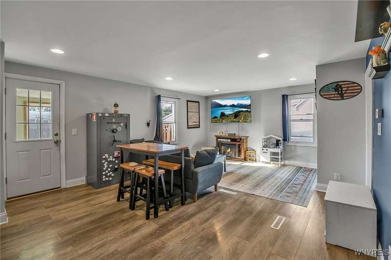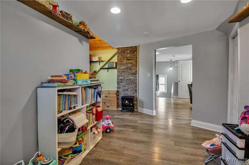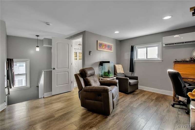 Welcome Home! Step inside and instantly feel the warmth and charm of this updated 3-bedroom, 2.5-bath home with attached garage. Thoughtful updates bring peace of mind, including a new complete tear off architectural roof (2023), electrical panel (2023), and mini-split system (2024)?Settle in the expanded living room with many windows throughout with plenty of space for entertaining. Just steps away, the first-floor main bedroom features new flooring (2025), recessed lighting, and a new electric fireplace (2025) framed with a mantel. The kitchen shines with new counters (2023), refreshed painted cabinets, updated appliances (2021) while fresh paint (2024) and updated flooring (2021) give the first floor a warm, modern feel. Finishing the 1st floor is a full bathroom with shelving, full bathtub, and modern fixtuers. Upstairs feels like a brand-new escape as the 2nd floor has been transformed! Two staircases lead to a spacious upstairs. The 2nd floor large bedroom has built-in shelving and a quiet study nook. Exposed brick and a rustic sliding barn door add character, opening to a flexible office or playroom. Another comfortable bedroom and a beautifully updated full bathroom with a beautiful walk-in shower with a rain shower head complete the second floor. Plenty of storage in the full basement with laundry, high ceilings, and new electrical panel. Walk out the sunroom onto the newer deck facing the nice size backyard. Outside, enjoy the private fenced yard with a new side fence (2021) and new back fence (2025)?perfect for parties in the backyard. With its blend of comfort, style, and thoughtful updates, this home is truly move-in ready! The upstairs has been finished which has added to the overall square footage of the home. Seller has the right to set an offer deadline. Open House: Wednesday, October 1, 5pm-7pm.