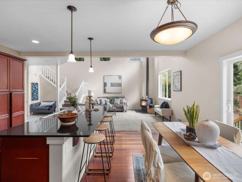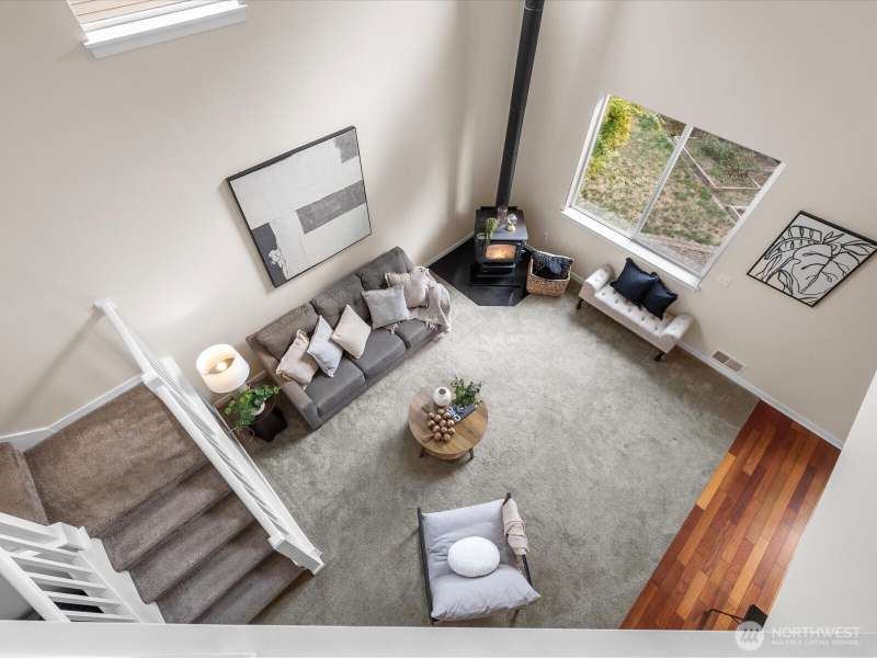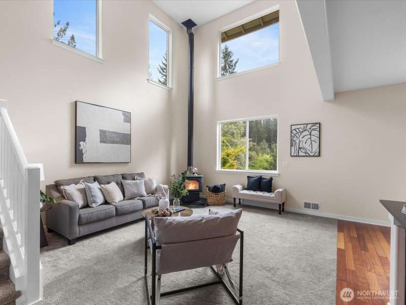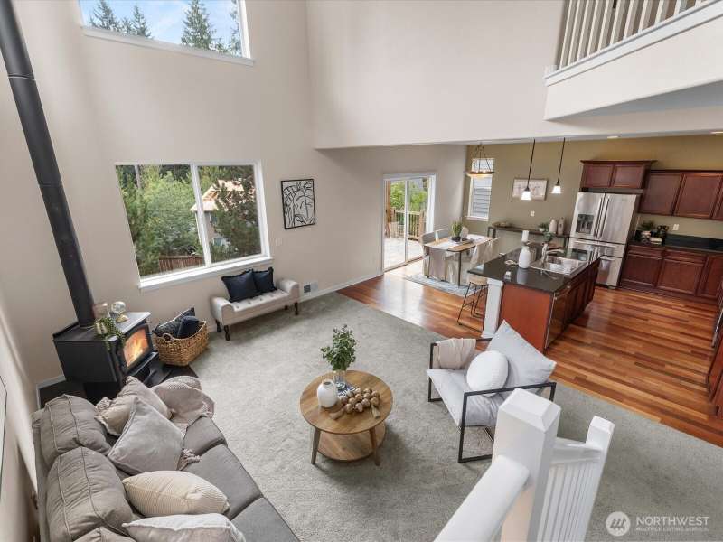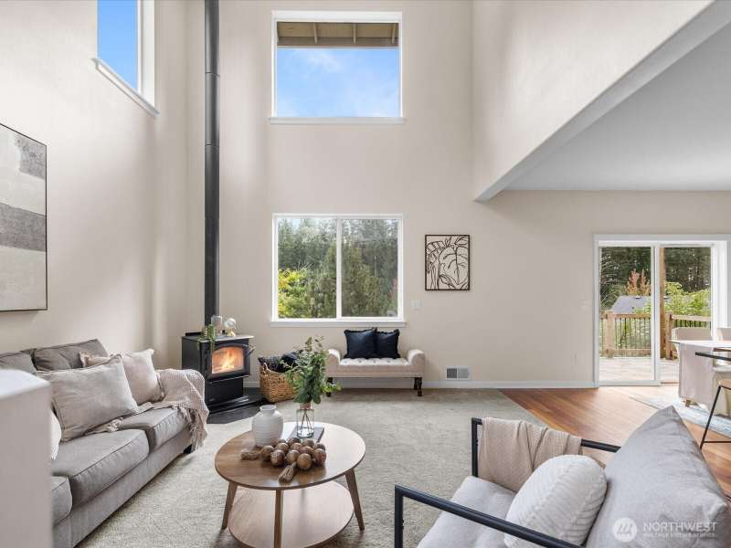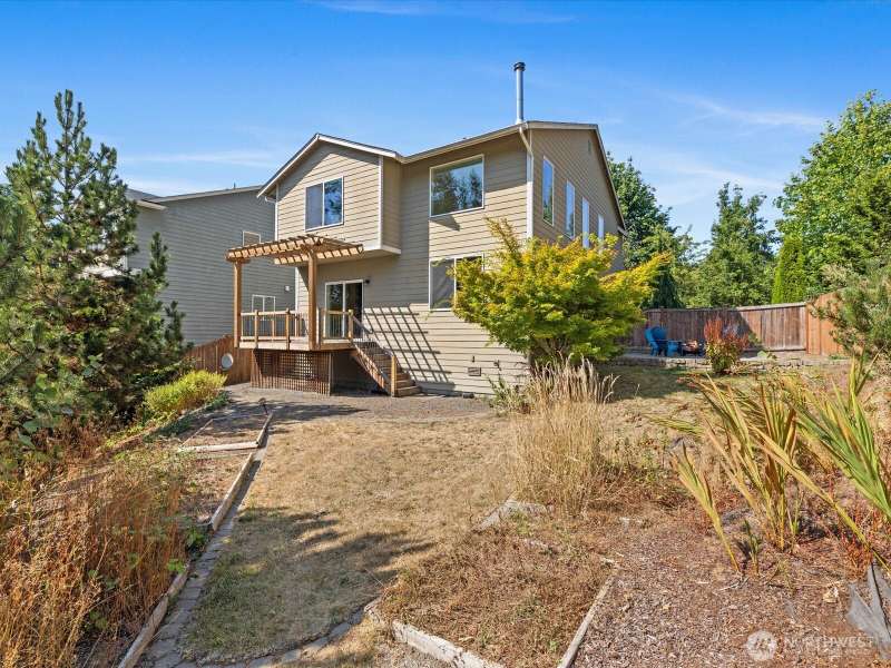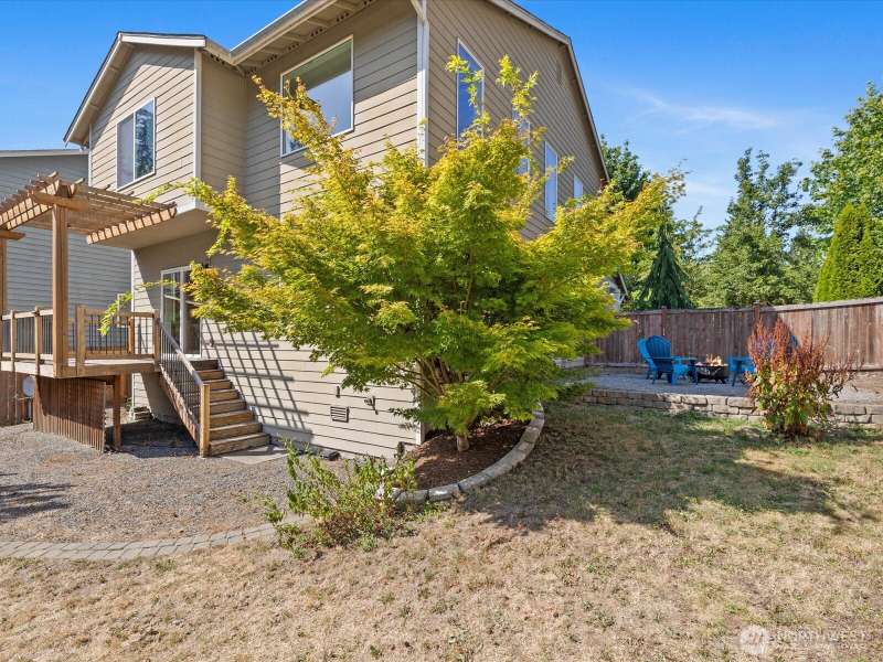 Step into a bright, inviting living room with vaulted ceilings and abundant natural light streaming through the main floor windows. The kitchen features granite countertops, stainless steel appliances, and a sliding door leading to a deck that overlooks a private, fully fenced backyard. Unwind by the firepit in a peaceful corner of the yard. Upstairs, you’ll find three spacious bedrooms, including a primary suite with an ensuite bathroom and walk-in closet. There is a second walk-in closet in one of the other bedrooms. Convenient upstairs laundry makes everyday living a breeze. Close to restaurants, groceries & highway 2.