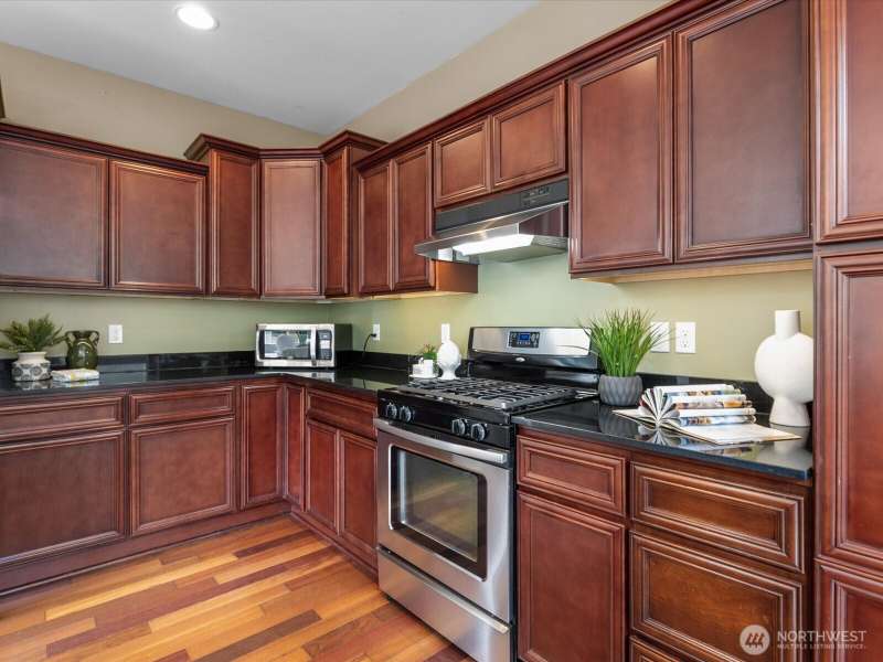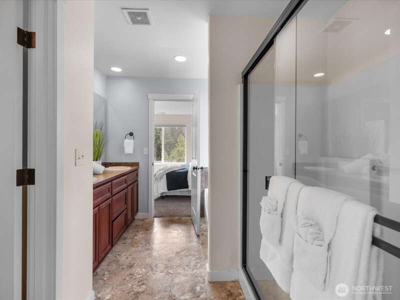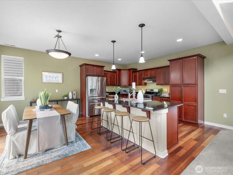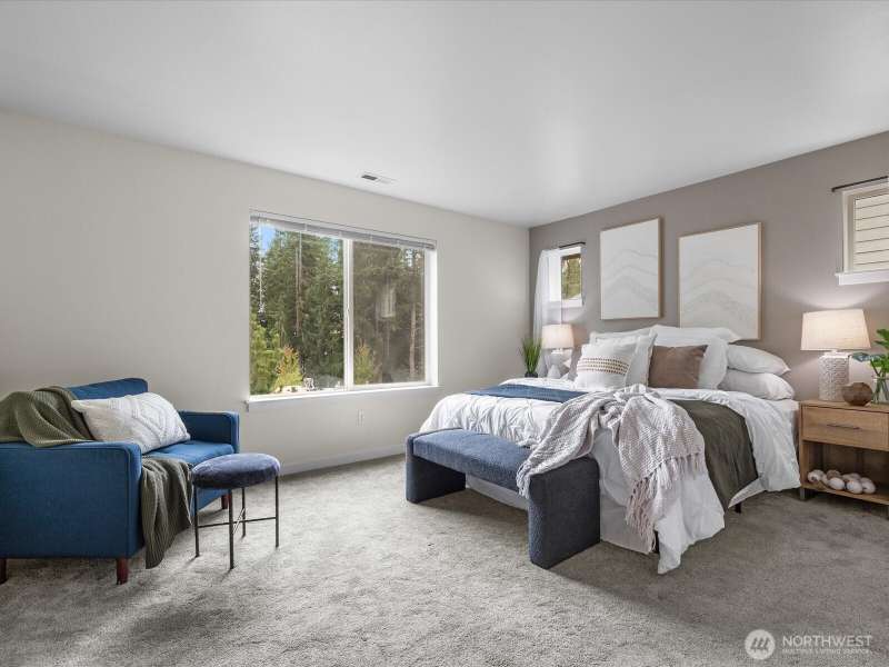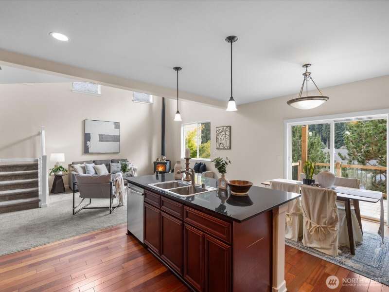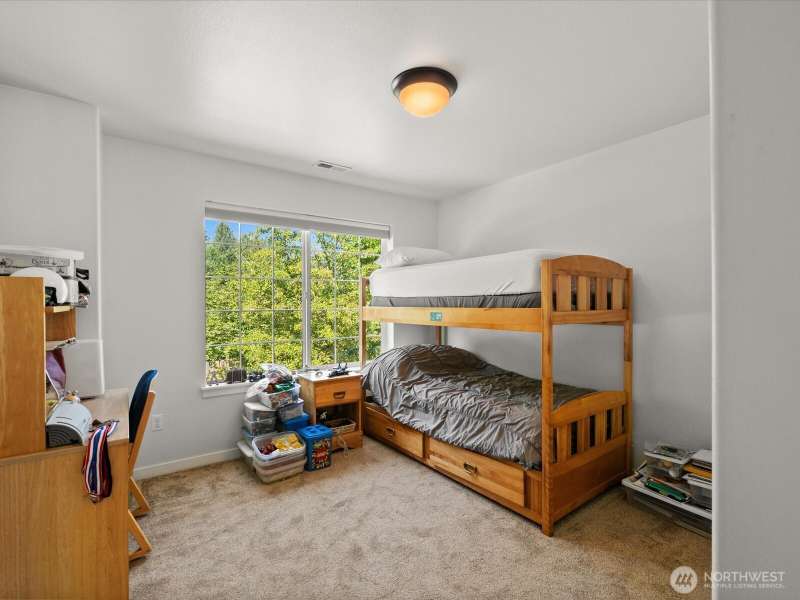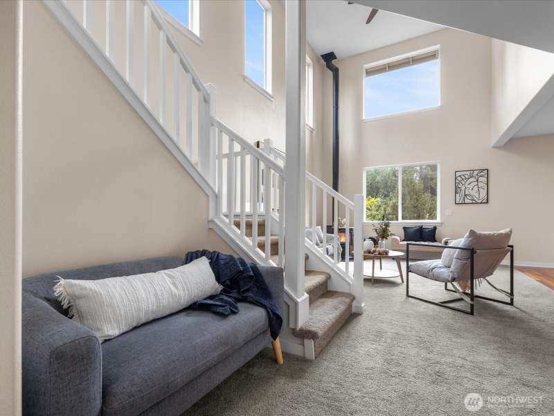 Step into a bright, inviting living room with vaulted ceilings and abundant natural light streaming through the main floor windows. The kitchen features granite countertops, stainless steel appliances, and a sliding door leading to a deck that overlooks a private, fully fenced backyard. Unwind by the firepit in a peaceful corner of the yard. Upstairs, you’ll find three spacious bedrooms, including a primary suite with an ensuite bathroom and walk-in closet. There is a second walk-in closet in one of the other bedrooms. Convenient upstairs laundry makes everyday living a breeze. Close to restaurants, groceries & highway 2.