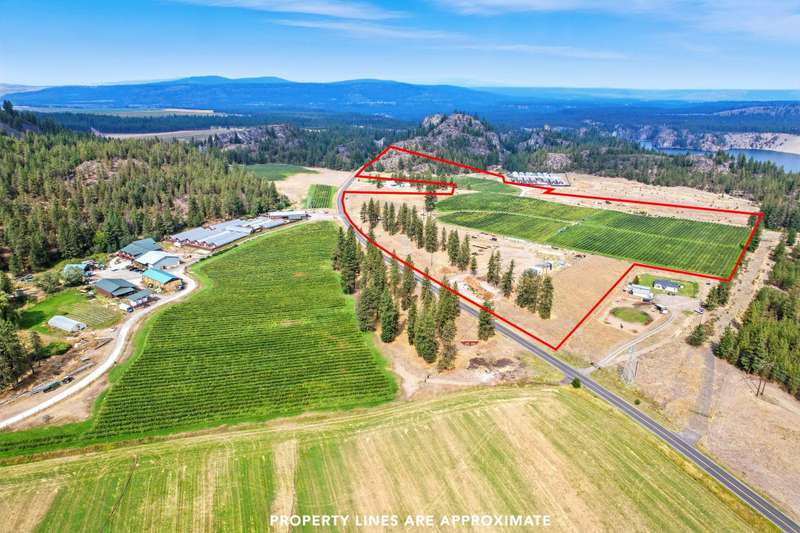 A rare offering in Eastern WA, Willow Wind Organic Farms encompasses 580+/- acres in 2 counties. In full production with highly coveted organic certification is 30+/- acres in blueberries along with 250+/- acres of alfalfa hay. Secure water rights supply farm-wide irrigation w/efficient & continuous operating systems. The farm is anchored by a complete processing facility featuring ample cold storage, temperature-controlled packing area, attached 105’ x 72’ living quarters, 100’x40’ hay barn, 80’x80’ machine shed, 54’x50’ shop, possible fruit winery & tasting room, and extensive storage. Diversification includes U-pick blueberry operation + smaller plantings of apricots, cherries, blackberries, & lavender. Beyond current production, several parcels offer blueberry expansion and residential development potential, while views of Lake Spokane and surrounding mountains add long-term appeal. This is truly a premier agricultural investment with opportunity to scale & grow a legacy.