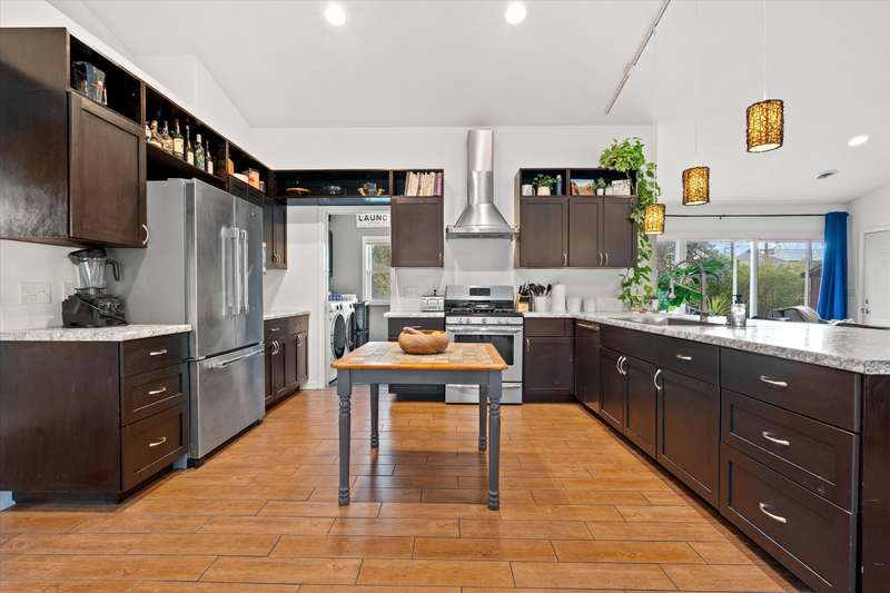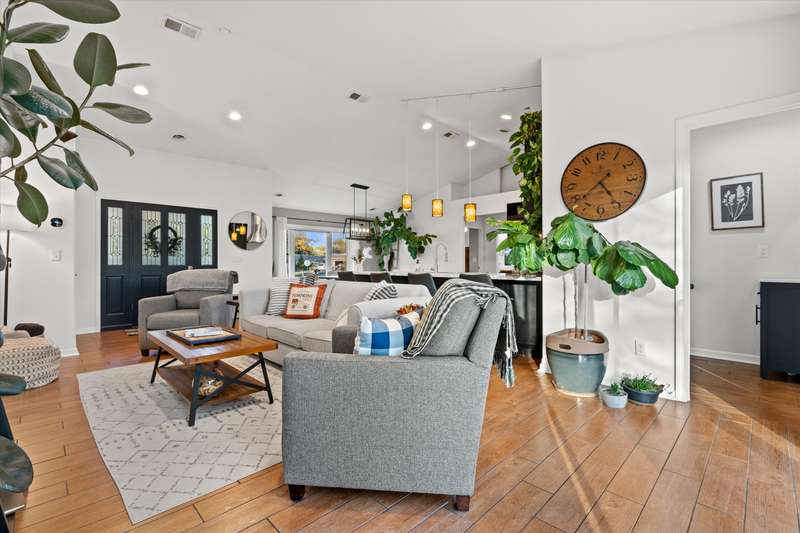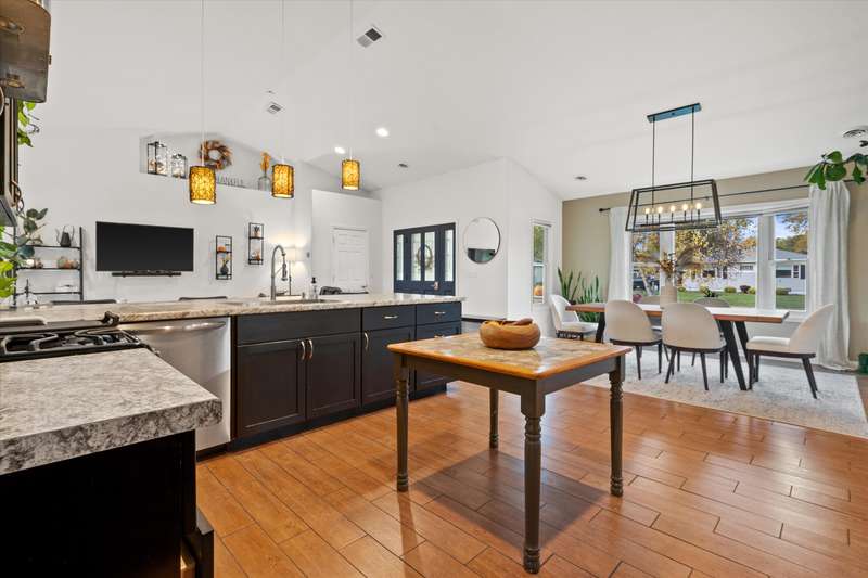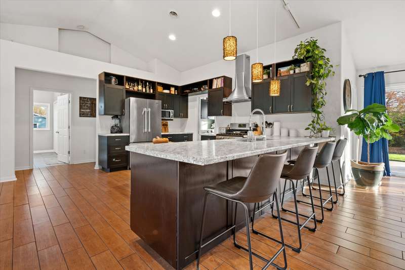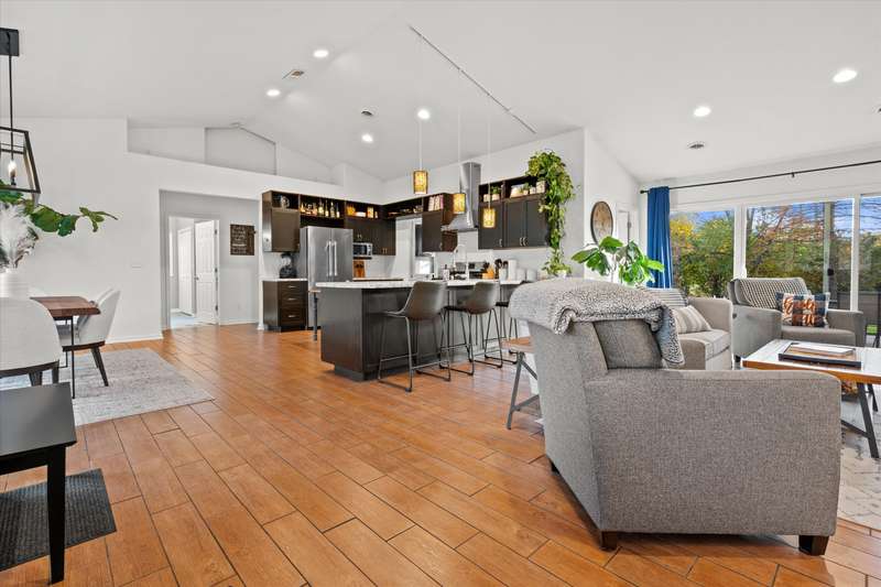 This beautifully reimagined ranch home in New Berlin was completely rebuilt from the foundation up in 2009, with every major system thoughtfully replaced-plumbing, insulation, electrical, windows, doors, mechanicals, and roof. Recent upgrades include a new air conditioning unit and air handler, high-efficiency gas boiler, brick front patio and walkway, modern appliances (dishwasher, washer, dryer), and a 240-volt outlet in the garage for EV charging. Spacious open-concept layout with soaring vaulted ceilings. Cozy in-floor hydronic heating. Convenient main-level laundry. Outdoor features sun-filled south-facing backyard with private patio, vegetable garden boxes, Chicken coop with option to adopt happy hens, large shed with overhead door-perfect for storage or a second garage. Prime Location with direct access behind property to the scenic New Berlin Bike Trail. Steps from Buena Park just down the street. Close to highways, shopping, dining, and top-rated schools. This move-in-ready gem blends modern comfort with outdoor charm-perfect for those seeking space, sustainability, and convenience.