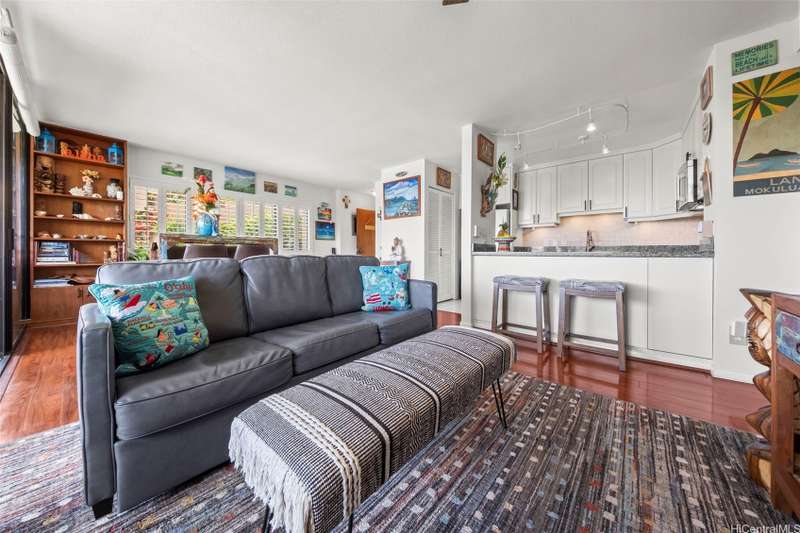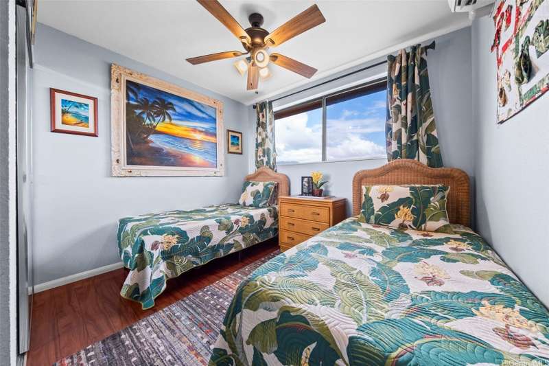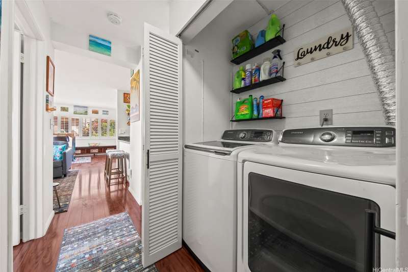 Paradise awaits in this single level townhome, private lanai with priceless views of Kaneohe Bay and the Koolau mountains. A must see home with unobstructed views. This well cared for corner unit, has split AC's in both bedrooms and living room, luxurious wood vinyl flooring, custom window shutters, full size washer and dryer, a tankless water heater giving you ample storage in the kitchen pantry, and extra storage in the garage where you have parking for 1 standard car and a second stall tandem in the driveway. This community is also pet friendly. Lush tropical landscape surrounds you in this established neighborhood tucked away in peace, but still near shopping malls, super markets, and restaurants. This is a must see!
