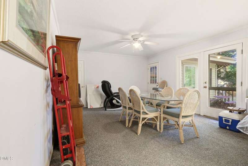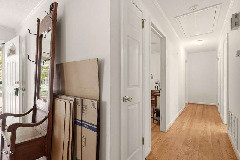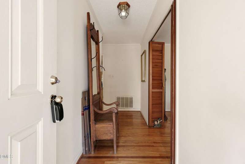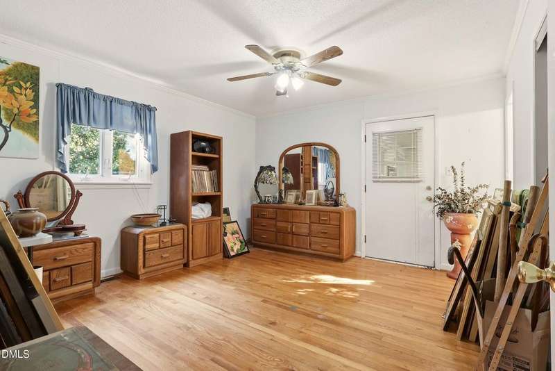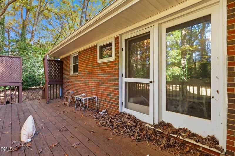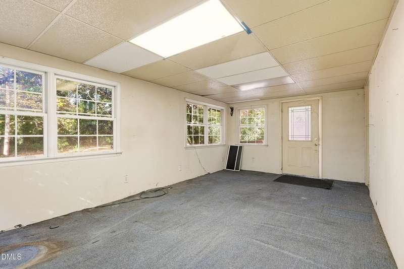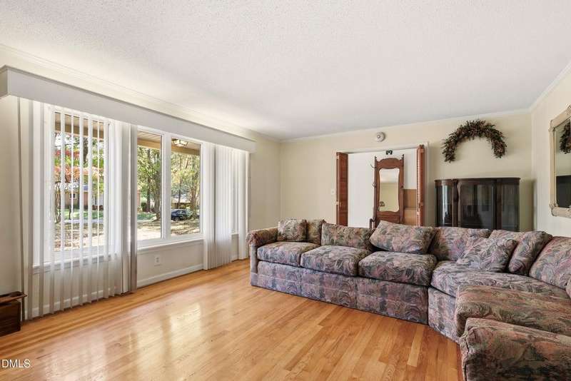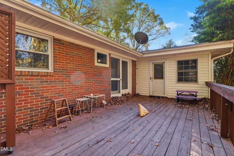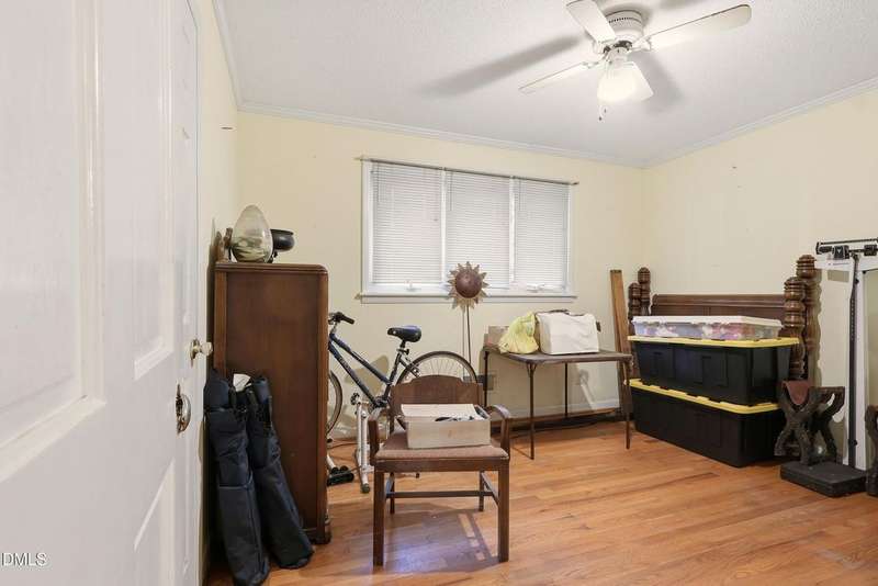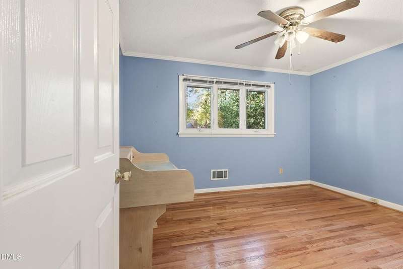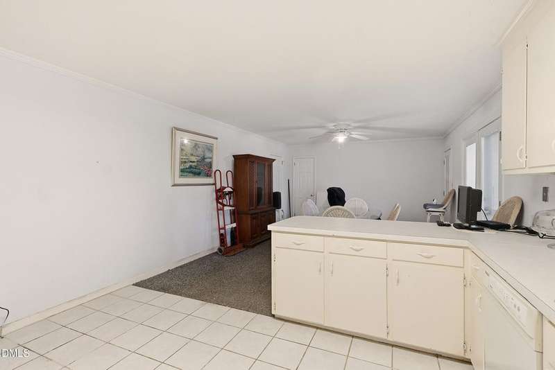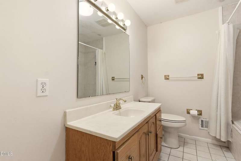 PRICED BELOW TAX VALUE: 1960s brick ranch with 3 bds and 2 full baths. Has original oak tongue and groove flooring throughout plus tile floors in bathrooms and kitchen. There is carpet in the dining room. Buyer to verify flooring under carpet. Nice roomy shed in the backyard and nice 5-6 foot viable chainlink fencing in the back yard. Large 1/2 acre lot. Nice neighborhood that feels like a small town but has all of the amenities of the Capitol City, Raleigh, NC.