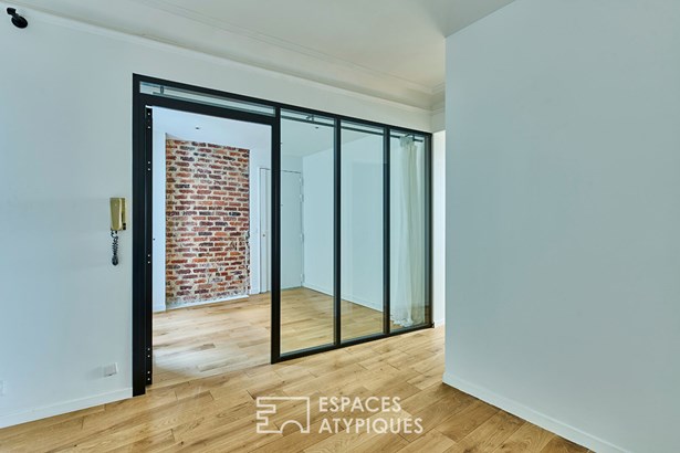 Located near the Marcadet-Poissonniers metro station, close to Jules Joffrin and its shops, this former photography studio was completely transformed in 2018 into a 107 m2 triplex (105.92 m2 Carrez law) in a distinctly industrial style.