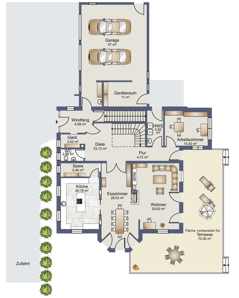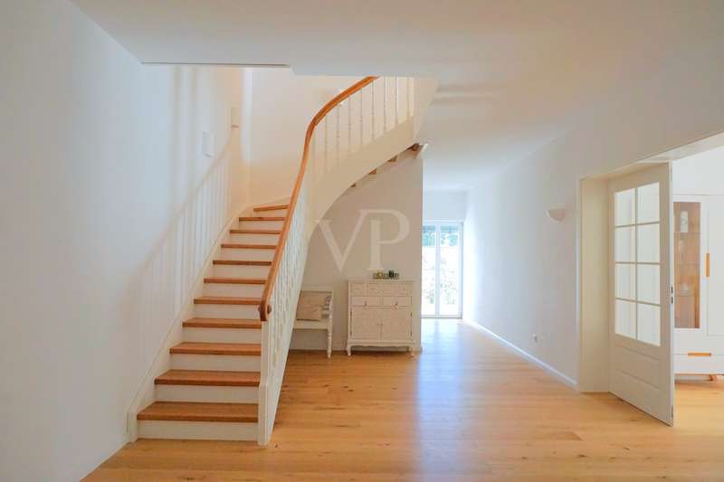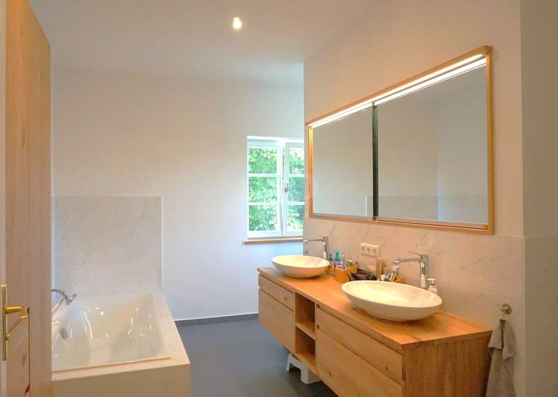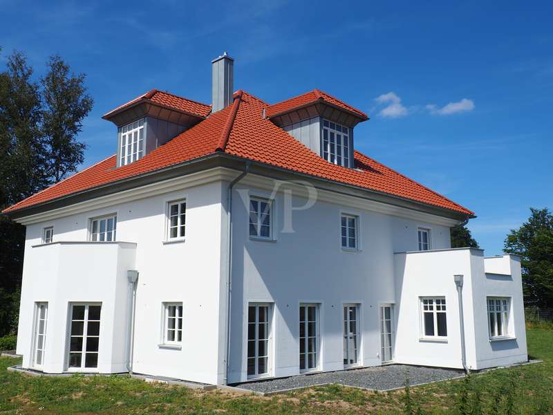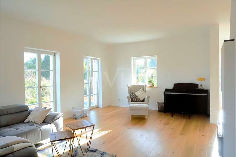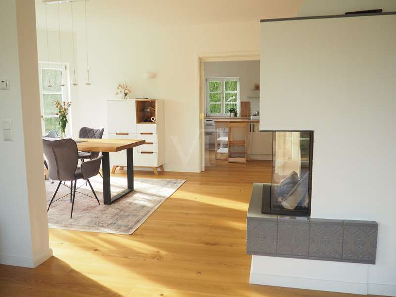 The stately property is located in an attractive small town (approx. 7000 inhabitants) around 20 km north of Tirschenreuth. The district town can therefore be reached in approx. 15 minutes. For sale is a spacious country villa with high-quality furnishings and an impressive plot of approx. 3053 m². The property was completed in 2022 and is in absolutely mint condition. Upon entering the house, the spacious and light-flooded atmosphere is immediately noticeable. The entire living space is spread over three floors and offers enough space for a family. In addition, the heated basement offers space for hobbies. The harmonious interplay of modern design and high-quality materials gives the house an exclusive ambience. On the first floor is the central living area, consisting of a spacious living room with a panoramic fireplace and an adjoining, top-equipped kitchen. Culinary masterpieces can be created here, while the family or guests can gather around the kitchen island. There is plenty of room for a large table in the light-flooded bay window. The private retreat for the family is located on the upper floor. The parents' sleeping area with access to the balcony and walk-in dressing room is located here. There is space for the whole family in the spacious bathroom, which is equipped with a bathtub, WC, shower and double washbasin. There are also three further bedrooms and a reading corner with access to the balcony. In the converted attic, you can pursue your work on around 91 m² or offer another child a place to sleep. The connections for the sauna including shower and WC are already provided in the basement. The laundry shaft leads from the upper floor via the first floor to the utility room in the basement. The entire basement is heated and fitted with windows. Here you can pursue your hobbies in peace. The house is equipped with a smart home system and electric blinds. Heating is provided by a brine-water heat pump. The property also includes a spacious double garage with space for two vehicles and additional storage space. The spacious plot offers plenty of room for outdoor activities and provides future owners with numerous options for individual finishing touches. The garden has a rainwater cistern of 3000 liters and the wiring for an electric garden gate has already been laid. There is also the possibility of creating a pool behind the house. Outside sockets and water connections are installed everywhere. The location of the house is rural and quiet, ideal for anyone looking for an oasis of peace. Shopping facilities, daycare centers/kindergartens and schools are in the immediate vicinity, which makes everyday life extremely pleasant. The small town offers a wide range of cultural and leisure activities. Sports facilities, as well as indoor and outdoor swimming pools, are easily accessible on foot or by bike through the adjacent park. All in all, this property presents itself as an exclusive offer for all those who are looking for a high-quality detached house with a large plot in a rural yet well-connected location. This property is a unique opportunity to realize your dream home. Arrange a viewing appointment today and see this high-quality property for yourself. We will be happy to provide you with a 360-degree tour. We look forward to seeing you!