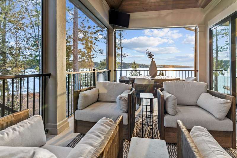 Luxury lakefront like-new custom home with all the amenities in Reynolds Lake Oconee showcasing the most breathtaking, expansive lakeviews imaginable. Nestled on nearly an acre of lakefront, this stunning home offers modern elegance with high-end finishes throughout. The long private driveway sets the tone for the grand experience that awaits inside.The 24ft ceiling great room with 9ft glass sliders seamlessly invite the outdoors in offering front row sunset views. Designed with style and convenience in mind, this smart home delivers a sophisticated yet welcoming ambiance.The custom cast iron front door opens to a striking interior with custom Italian tile flooring, designer lighting, floating iron and wood staircase highlighted by a custom antique mirrored glass, remote-controlled electric fireplace. The exceptional open floorplan was designed to capture views of the lake from nearly every room. The kitchen is framed by Bentley cambria quartz waterfall countertop island and coordinating vent hood, sleek custom cabinetry, and professional designer appliance package that include Sub-Zero refrigerator, Wolf cooktop, Cafe Professional Series oven, Cove dishwasher, ice maker, dual refrigerator drawers, and a 288-bottle Zephyr wine refrigerator. The luxurious primary suite boasts 10” natural hardwood plank floors, remote-controlled electric fireplace, custom Artisan closets, and a spa-like bath with floor-to-ceiling tile throughout, natural wood vanities and cabinets with concrete vessel sinks. The main level also include a versatile office that can easily serve as an additional bedroom. A beautiful floating iron staircase leads to the terrace level where a spacious family room and billiard room await. This level is an entertainer's dream featuring a full bar, powder room and a seamless access to the pool deck with expansive lake views as the perfect backdrop. The rare flat lake backyard is a true gem in this community.The terrace level also features three well-appointed guest suites ensuring ample space for family and friends. Watch your favorite games in your expansive outdoor deck or enjoy the sunset in your salt water pool/spa with spillway, automatic cover and fire pit. This luxurious home features remote control blinds, three-car garage,large custom seasonal closet and Smart Home features (security, pool,firepit,lighting).Location is unparalleled. Walk to the clubhouse and the Jack Nicklaus course. Membership is available.