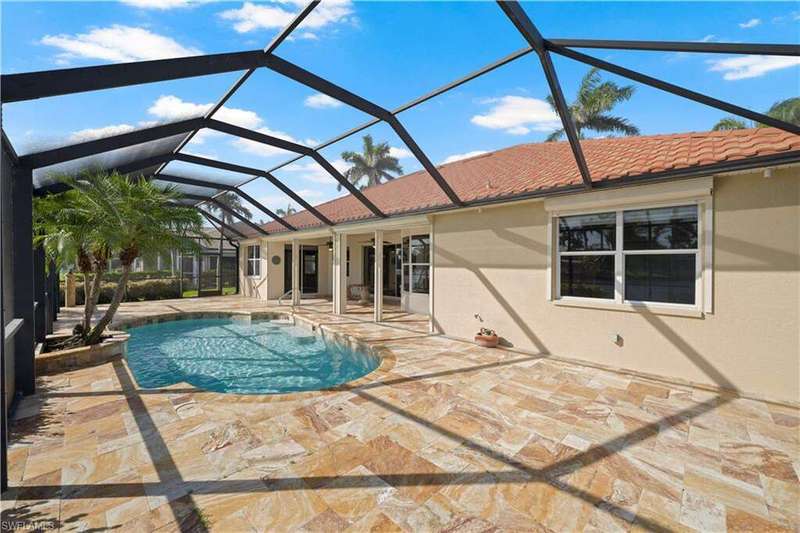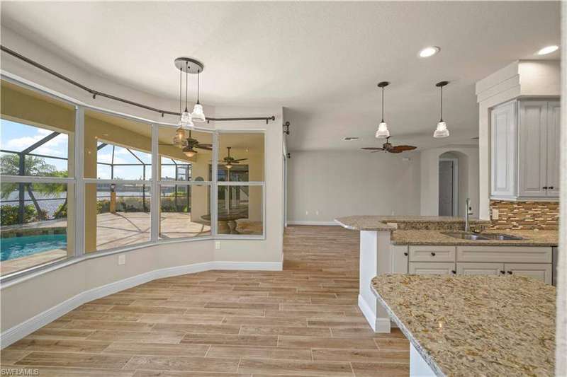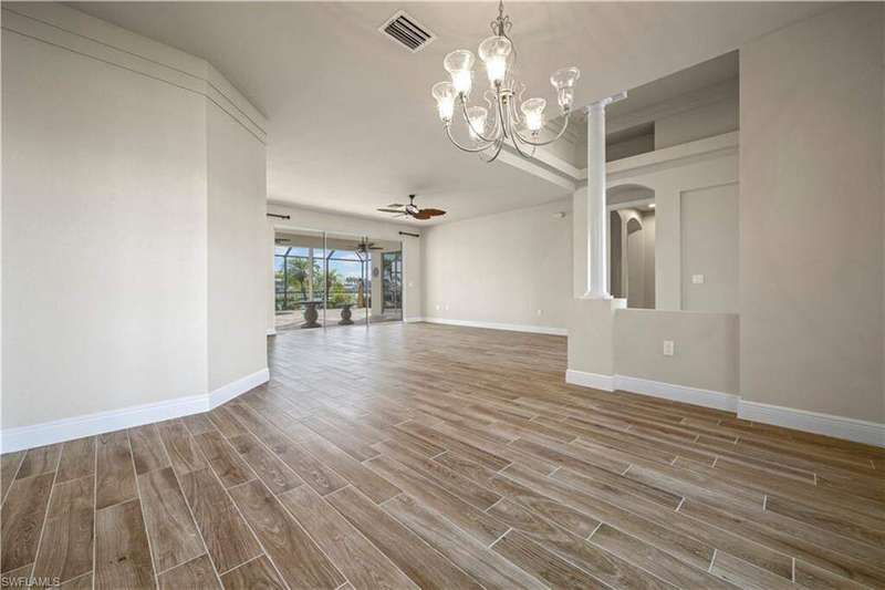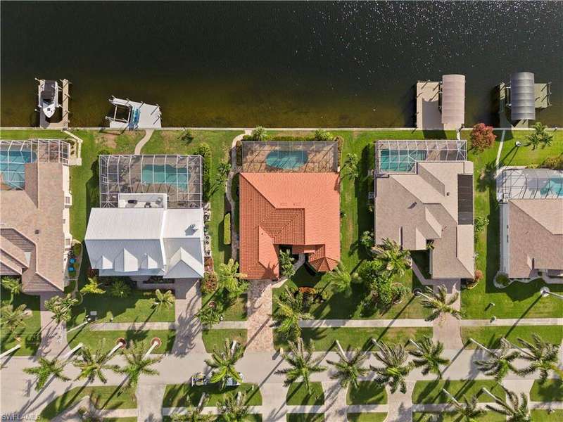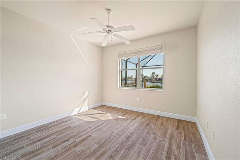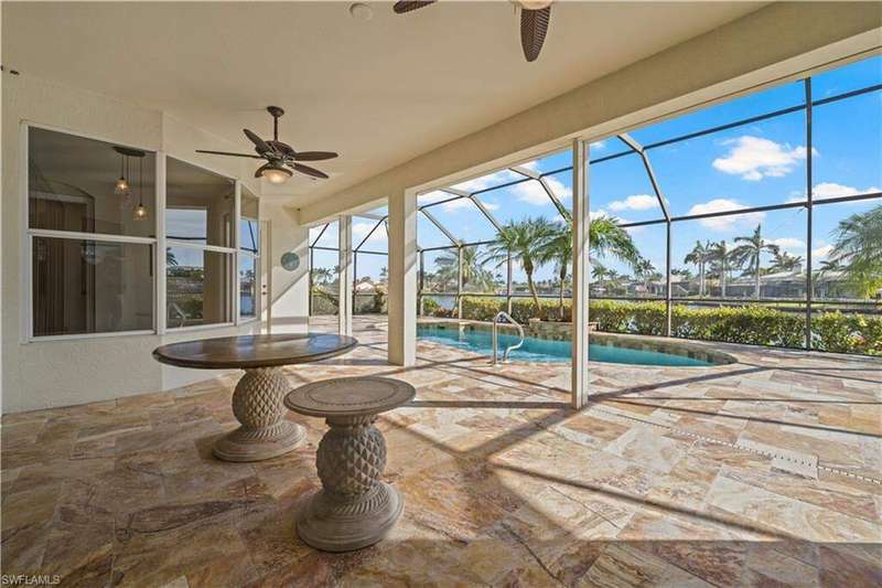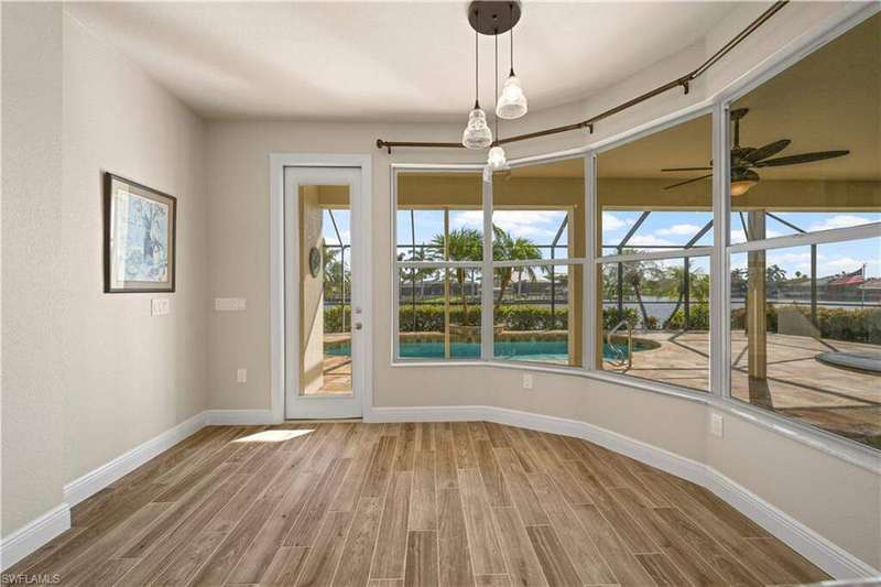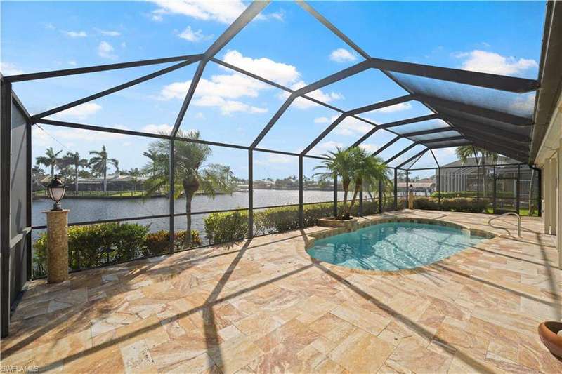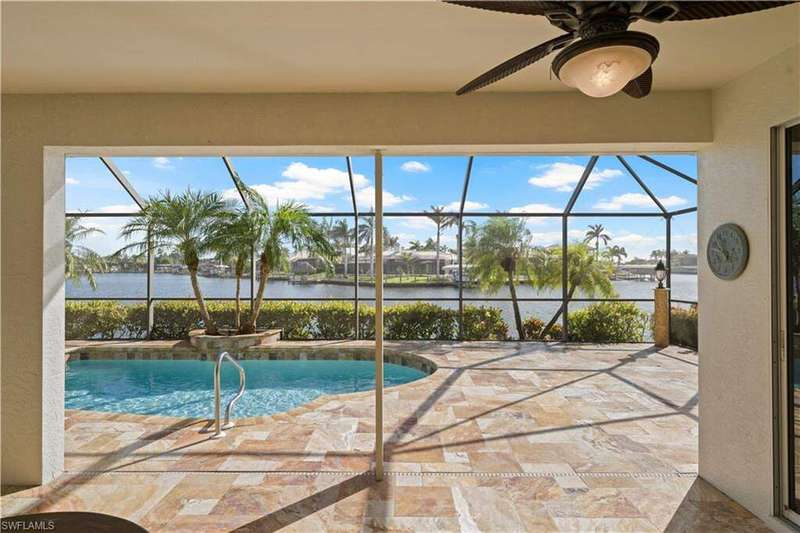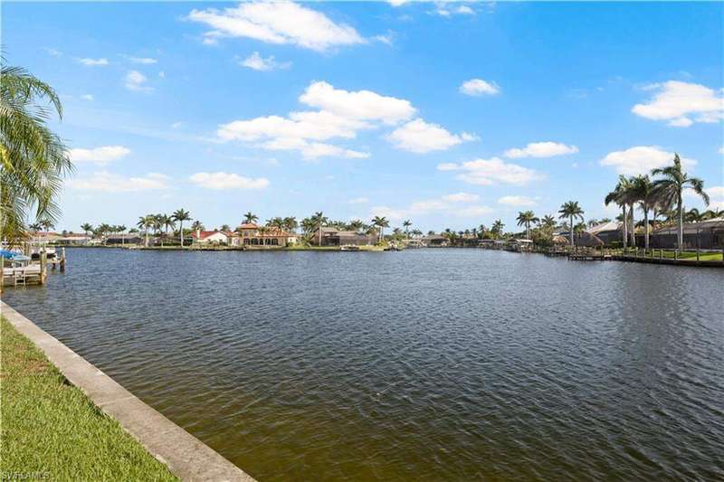 Beautifully remodeled, with NEW ROOF (2024) and a $50K CREDIT AT CLOSING FOR FUTURE BOAT DOCK, this 3-bedroom, 2.5-bath single-family home is a rare find under $1M. Imagine... you can design your own custom dock and have it installed right away since there's currently NO EXTRA WAIT TIME for permitting (30 days for permit and 30-45 days to build)! Located on a 220 foot wide canal in the luxurious Tarpon Point / Rose Garden area of southern Cape Coral, it offers quick access to open Gulf waters-just 1 mile by boat. Gorgeous curb appeal with natural stone pavers on the driveway, queen palms, lush grass, and tropical landscaping. Inside, you'll love the all-new kitchen with high-quality cabinetry, beautiful granite countertops, and stainless steel appliances. New wood-look long plank tile flows throughout the home, complemented by LED lighting, updated bathrooms, and a spacious primary suite with dual walk-in closets and a luxury ensuite bath. As you walk through the front door, you're greeted with immediate views of the water beyond your private pool. The backyard oasis features natural stone pavers on the pool deck and tropical vegetation for a true Southwest Florida retreat. With 85 feet of seawall in excellent condition, the property is ready for your custom dock and we have a quote on hand! Other features include whole-home storm protection with electric shutters and a transferrable, affordable flood insurance policy. Best of all-there are no HOA fees. This is waterfront living at its finest in one of Cape Coral's most desirable neighborhoods!