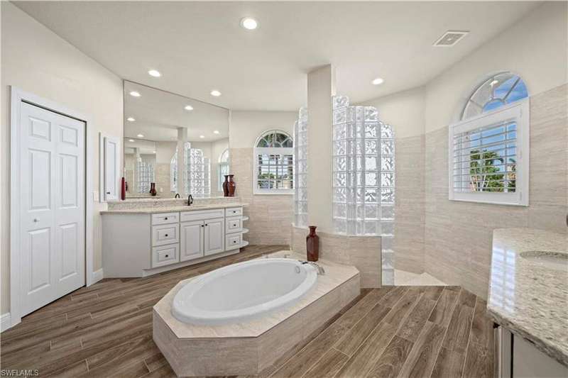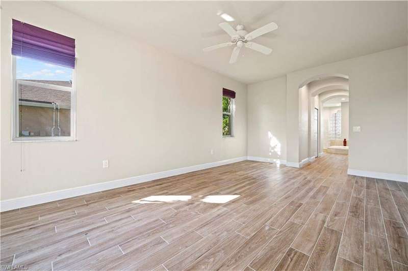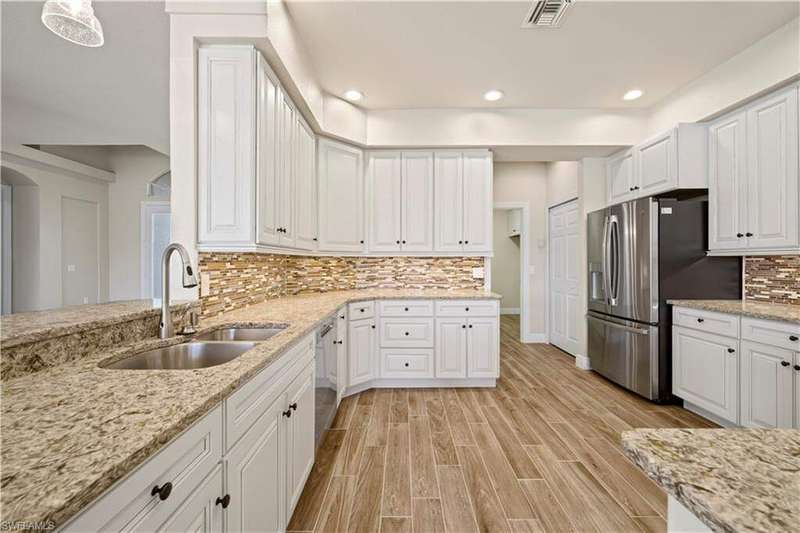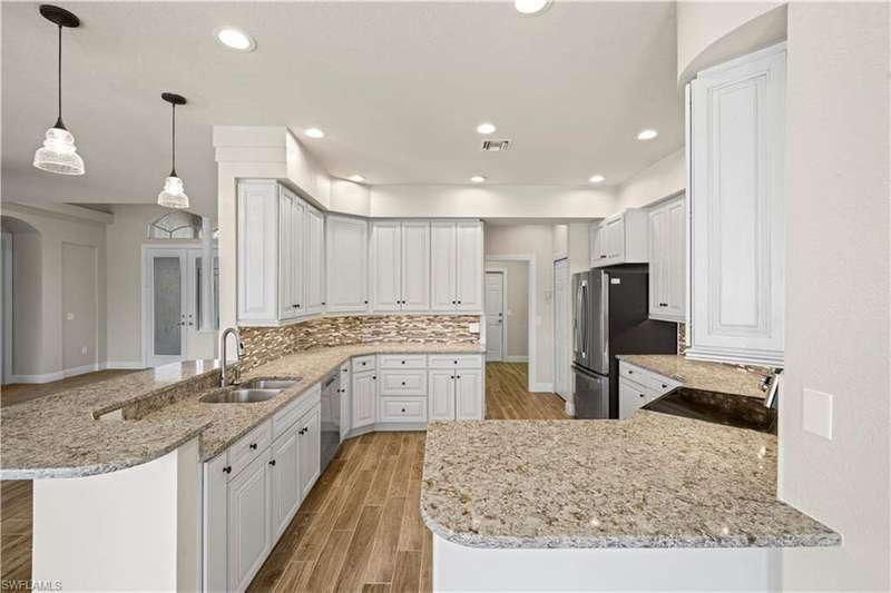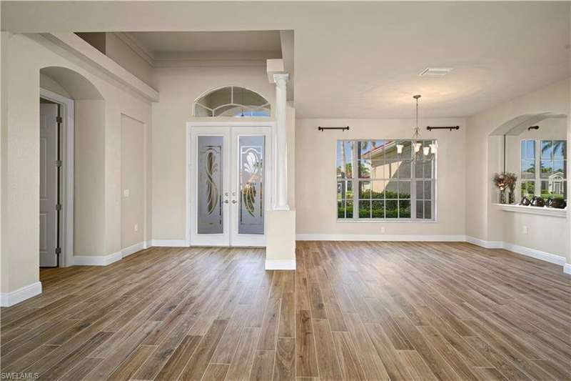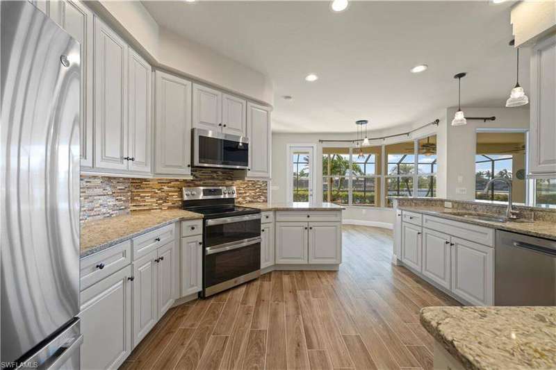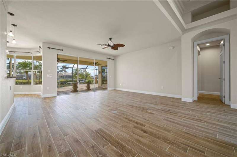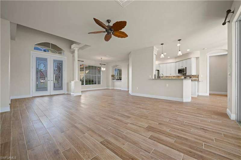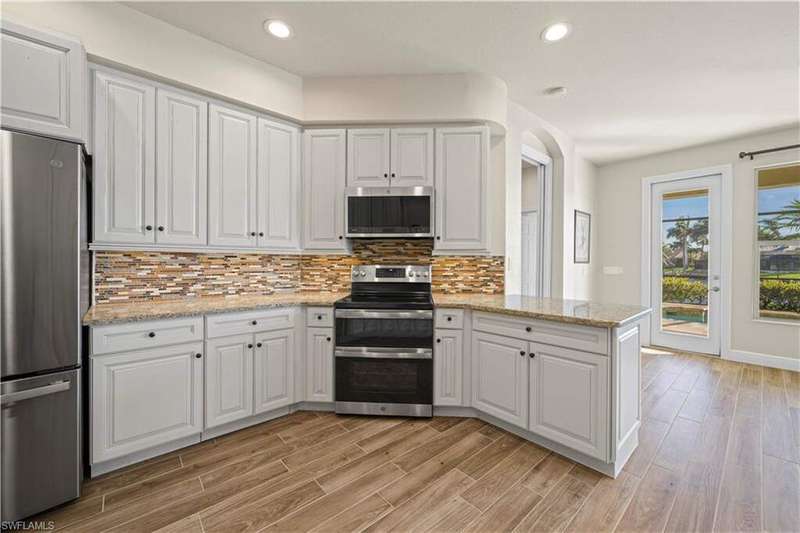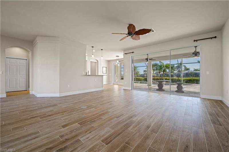 Beautifully remodeled, with NEW ROOF (2024) and a $50K CREDIT AT CLOSING FOR FUTURE BOAT DOCK, this 3-bedroom, 2.5-bath single-family home is a rare find under $1M. Imagine... you can design your own custom dock and have it installed right away since there's currently NO EXTRA WAIT TIME for permitting (30 days for permit and 30-45 days to build)! Located on a 220 foot wide canal in the luxurious Tarpon Point / Rose Garden area of southern Cape Coral, it offers quick access to open Gulf waters-just 1 mile by boat. Gorgeous curb appeal with natural stone pavers on the driveway, queen palms, lush grass, and tropical landscaping. Inside, you'll love the all-new kitchen with high-quality cabinetry, beautiful granite countertops, and stainless steel appliances. New wood-look long plank tile flows throughout the home, complemented by LED lighting, updated bathrooms, and a spacious primary suite with dual walk-in closets and a luxury ensuite bath. As you walk through the front door, you're greeted with immediate views of the water beyond your private pool. The backyard oasis features natural stone pavers on the pool deck and tropical vegetation for a true Southwest Florida retreat. With 85 feet of seawall in excellent condition, the property is ready for your custom dock and we have a quote on hand! Other features include whole-home storm protection with electric shutters and a transferrable, affordable flood insurance policy. Best of all-there are no HOA fees. This is waterfront living at its finest in one of Cape Coral's most desirable neighborhoods!