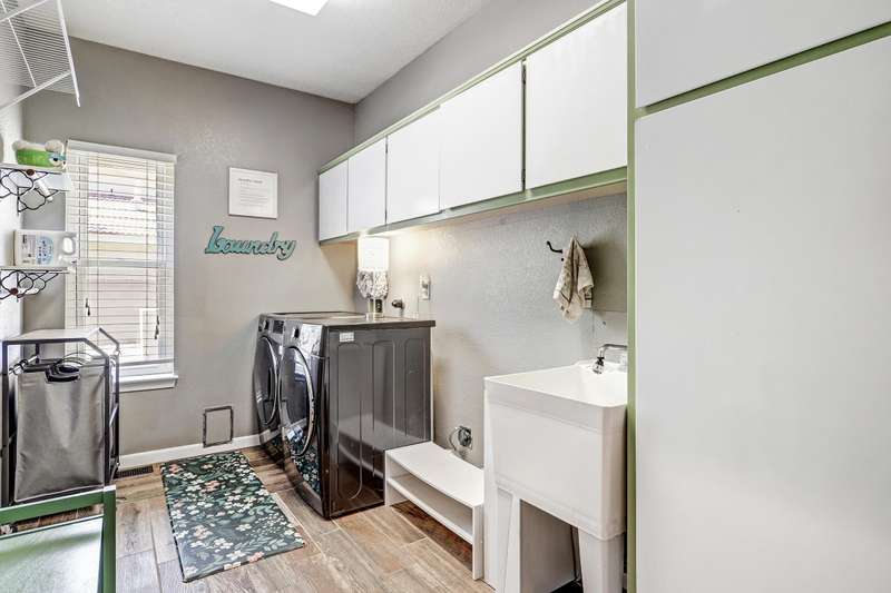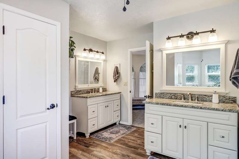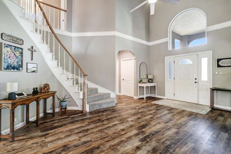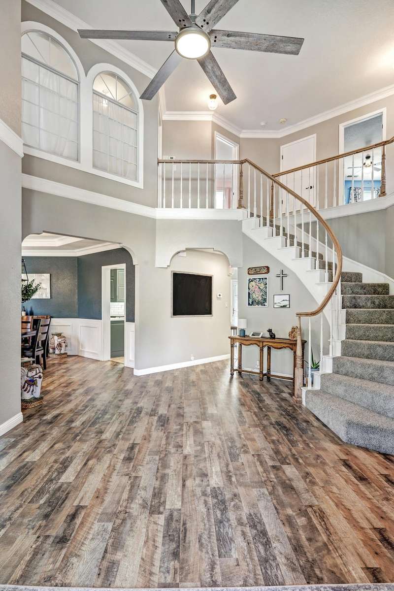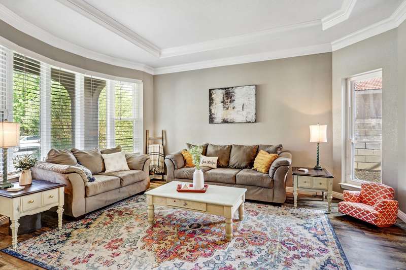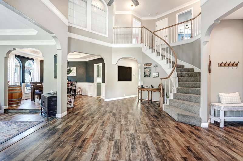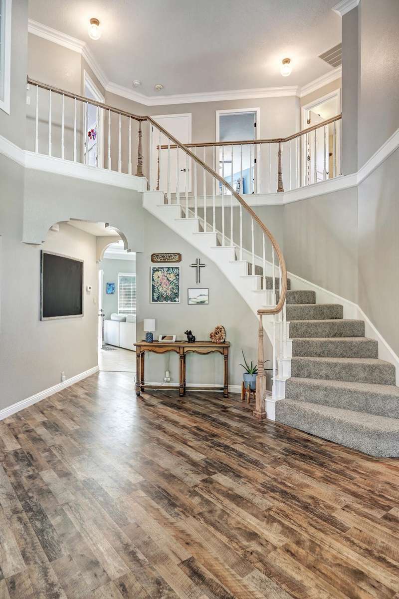 OPEN SATURDAY 6/28/25 1pm to 3pm. Incredible home located in the highly sought after Peppertree subdivision served by top rated schools! Wonderful updates throughout the home include a stylish kitchen with tons of cabinet space, quartz countertops, double ovens and newer gas range, and convenient beverage fridge. Custom paint throughout and plush newer carpet in the upstairs bedrooms (less than 1 year old). Main level has attractive wood look laminate flooring and ceramic tile. Updated spa like primary bath has double vanities a soaking tub and separate shower. Generously sized primary closet has custom organizers. Spacious guest rooms with one bedroom and a bath on the main level! 3 car garage. Nicely landscaped east facing backyard is a perfect place to relax. Superb location!