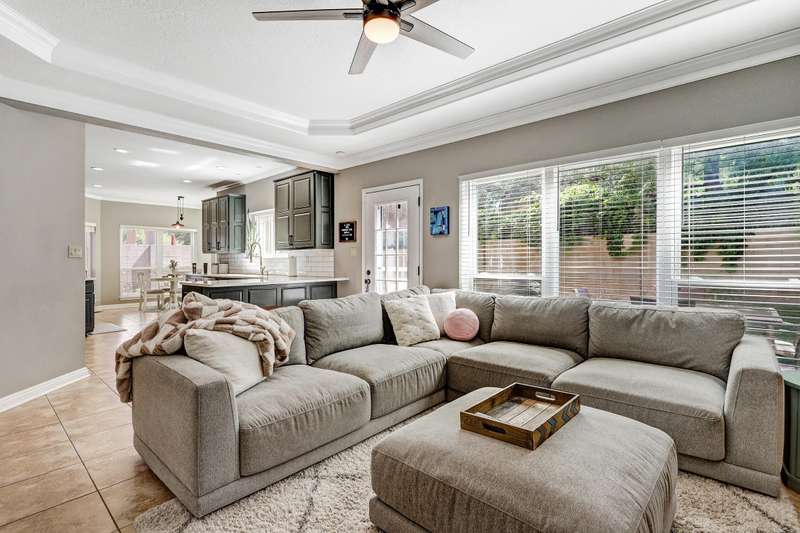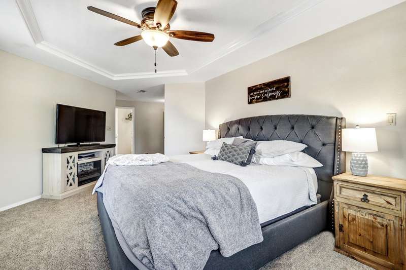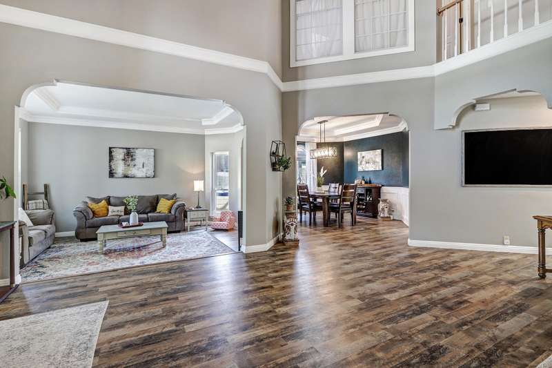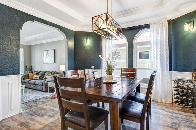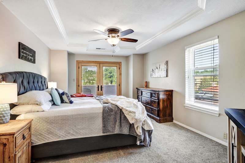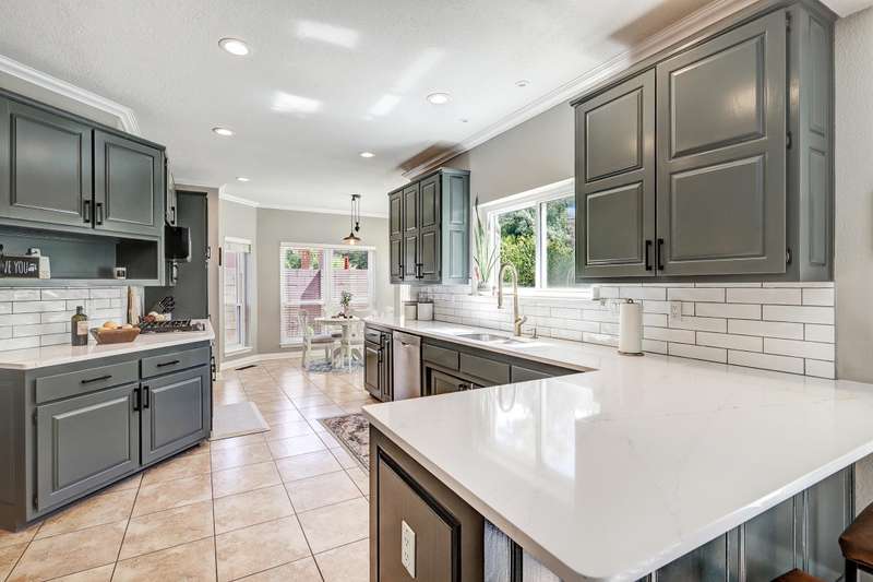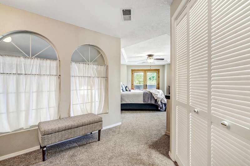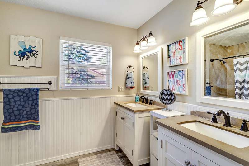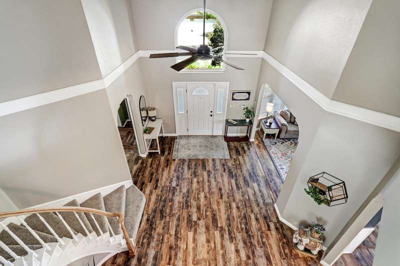 OPEN SATURDAY 6/28/25 1pm to 3pm. Incredible home located in the highly sought after Peppertree subdivision served by top rated schools! Wonderful updates throughout the home include a stylish kitchen with tons of cabinet space, quartz countertops, double ovens and newer gas range, and convenient beverage fridge. Custom paint throughout and plush newer carpet in the upstairs bedrooms (less than 1 year old). Main level has attractive wood look laminate flooring and ceramic tile. Updated spa like primary bath has double vanities a soaking tub and separate shower. Generously sized primary closet has custom organizers. Spacious guest rooms with one bedroom and a bath on the main level! 3 car garage. Nicely landscaped east facing backyard is a perfect place to relax. Superb location!