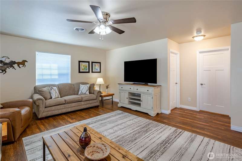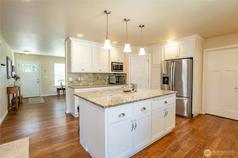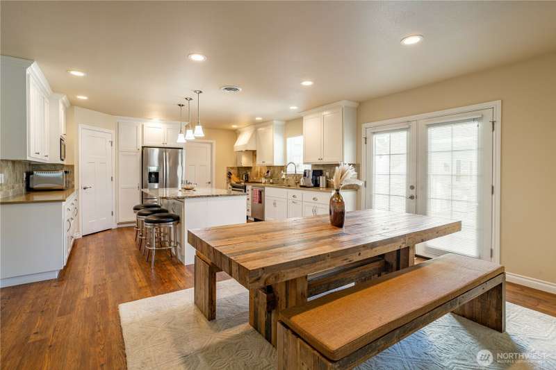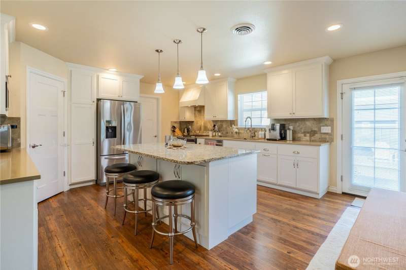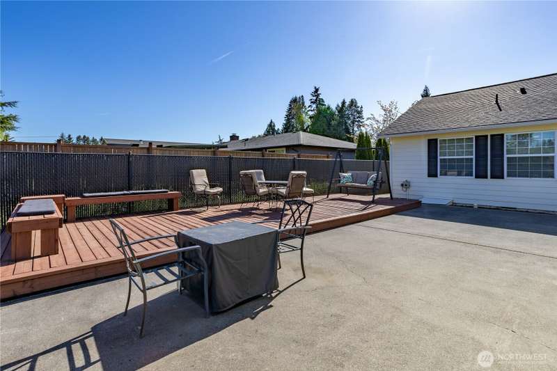 Step inside this elegant single-story home boasting 3 bedrooms and 2 full baths, discover a wealth of living space including dining room, a cozy family room, and bright inviting living room. The chef's kitchen with eating space and professional gas stove is a dream, while conveniences like a tankless water heater and heat pump ensure comfort and efficiency. Situated on an extra-large lot, the back yard is fully fenced and low-maintenance. The manicured lawn and outdoor spaces is an entertainer's delight with custom covered BBQ area and sundeck. Detached, insulated 720sf garage with ample storage. Home is surrounded with extensive level concrete and front door has accessible level approach. This is a one of a kind, special home.