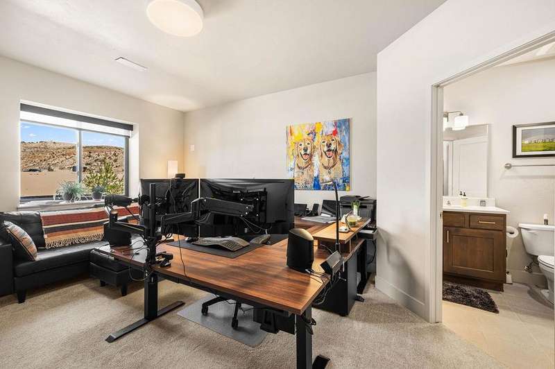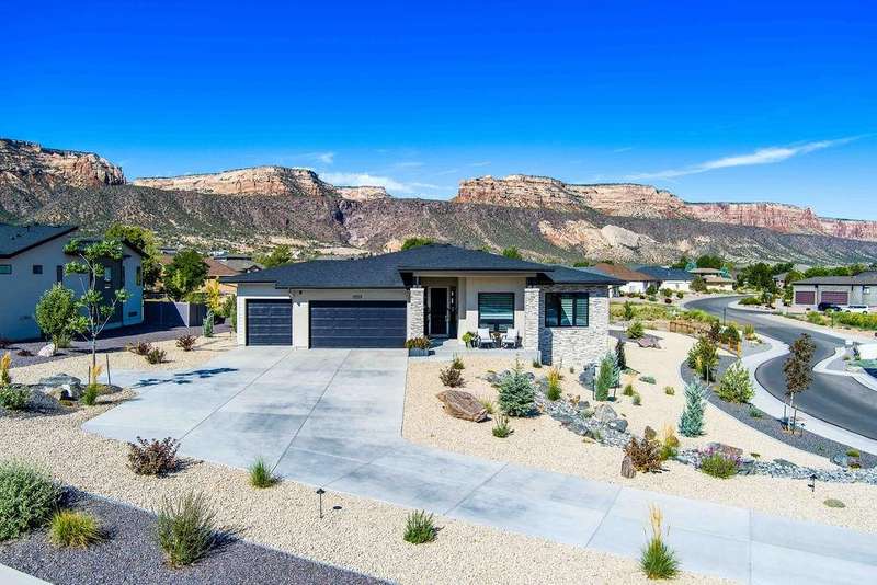 Welcome Home to Monument Views in the Redlands! This stunning 4595 sf home was designed for the way you want to live—open, welcoming, and surrounded by the beauty of the Colorado National Monument. Floor-to-ceiling windows flood the home with natural light and frame breathtaking views. The heart of the home is the spacious great room, where a two-sided stone fireplace connects cozy mornings indoors with evenings spent entertaining on the covered deck. The gourmet kitchen, complete with a large island, GE Profile stainless steel appliances, solid-surface countertops, and a 5-burner gas cooktop, is both a chef’s dream and a natural gathering place for family and friends. Meals flow easily from the dining area to the deck, where sunsets and star-filled skies provide the perfect backdrop. The great room is completed with Hunter Douglas Power-View roller blinds. Your primary suite is a relaxing retreat with spa-inspired details including dual vanities, a walk-in shower, a freestanding soaking tub, and nicely sized closet space. The main floor also offers a junior suite for guests and a private office for quiet productivity, blending practicality with elegance. Downstairs includes a wet bar, a spacious family room with fireplace, a recreation or game area, another junior suite, two additional bedrooms with a Jack-and-Jill bath, and a powder room. It’s the ideal space for movie nights, game days, or hosting gatherings that linger late into the evening. Adding to the comfort is the xeriscape yard with complete drip system. Almost ¾ A is the size your new exterior space that is virtually maintenance free and includes pet friendly turf, firepit, and water feature – the deer, quail, and hummingbirds will also capture your attention. Every element of this home has been created to elevate daily living into an art form. From sunrise over red rock cliffs to evenings spent under starlit skies, this residence is more than a home—it is a vantage point for Colorado’s most breathtaking scenery. Located in the new Canyon Rim 360 Subdivision, you are close to hiking and biking trails – easy access to downtown, and so much more. Ask your agent for a detailed list of features. Make an appointment to see this home today!