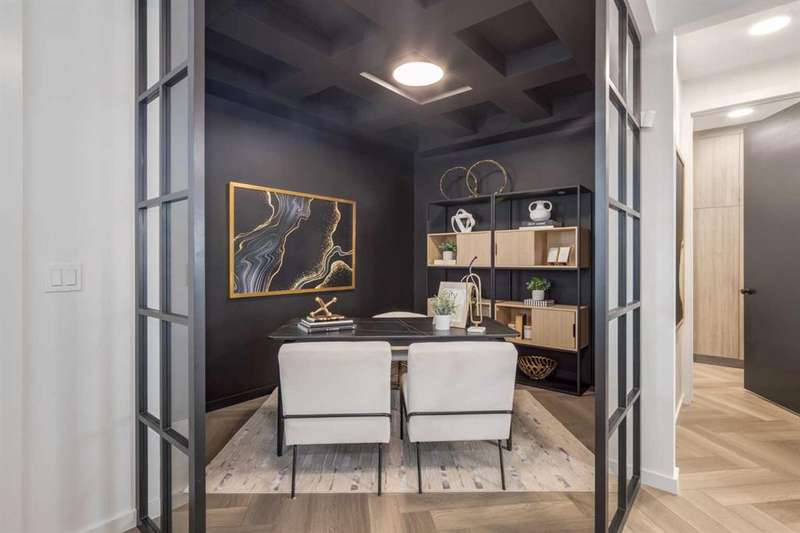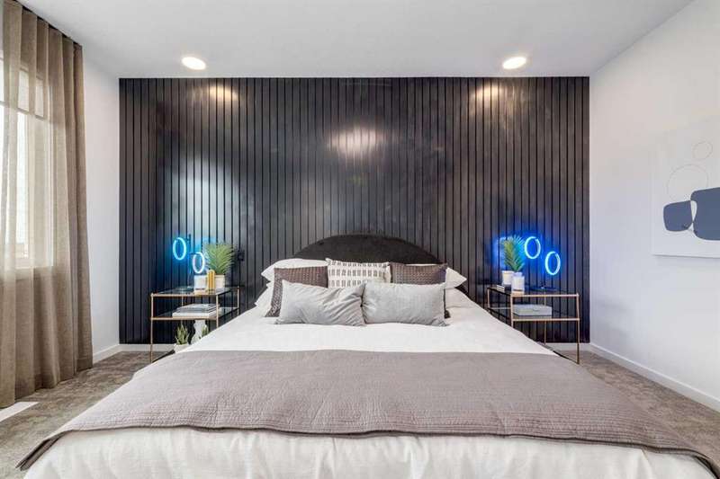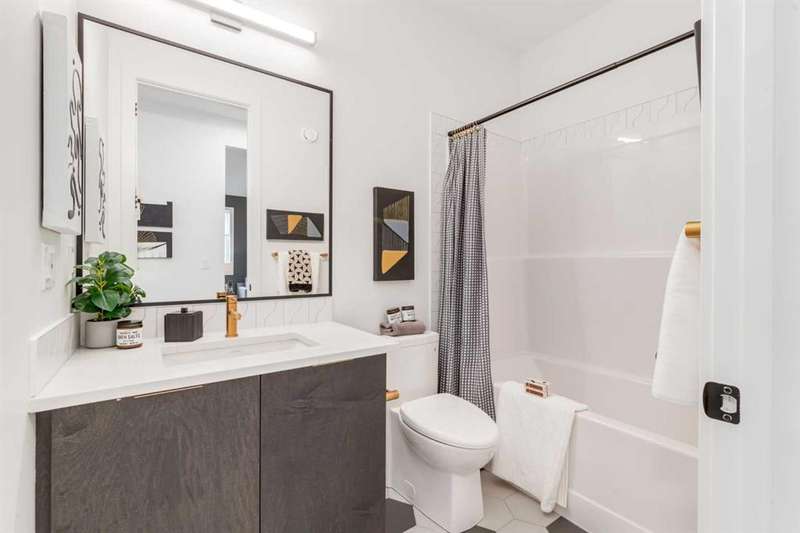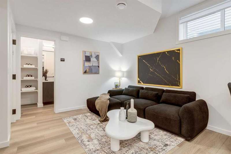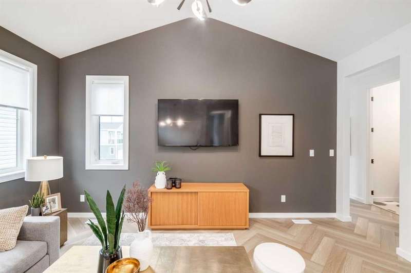 WHEN A HOUSE STARTS OUT AS A SHOWHOME, YOU NOTICE—THE DETAILS ARE SHARPER, THE FINISHES BOLDER. This Homes by Avi build carries the kind of features you rarely see offered together—deliberate, dramatic, and designed to impress. Now, instead of open house hours, it’s ready for its first owner, with possession at the END OF NOVEMBER. The main floor begins with an office that doesn’t apologize for being front and center. Framed in GLASS-PANEL WALLS and finished in a bold black palette with a COFFERED CEILING overhead, it’s designed to be on display—equal parts workspace and showpiece. From there, herringbone-pattern LUXURY VINYL PLANK flooring pulls you through the open plan: past the WATERFALL QUARTZ ISLAND and Silgranit sink in the kitchen, into a dining area that opens through a three-panel glass door to the 14’ x 10’ DECK with gas line. The living room centers on a FIREPLACE FEATURE WALL clad in vertical wood slats stained to match the dark kitchen cabinetry, dramatic and grounding all at once. Upstairs, the BONUS ROOM vaults high, finished with a wet bar and fridge so the space lives just as easily for movie marathons as it does for casual evenings in. The master bedroom takes luxury further: DUAL VANITIES frame a SOAKER TUB beneath a wide window, paired with a glass shower that feels more spa than standard. From there, the flow continues into a walk-in closet fitted with CUSTOM WOOD SYSTEMS and large enough for a central bench—then on to a laundry room finished with COUNTER, SINK, AND CABINETRY that look as considered as the rest of the home. Two more bedrooms, each with their own walk-in closet, and a full bath round out the level. The lower level is fully finished as a LEGAL BASEMENT SUITE, complete with its own kitchen, FULL APPLIANCE PACKAGE, laundry, and private entry. Independent systems—including a sub-panel and second furnace—make it practical and comfortable for multigenerational living, long-term guests, or rental income. This was never a standard build. A SPRINKLER SYSTEM, TANKLESS HOT WATER, 200-amp electrical service, GARAGE MAN DOOR, and AIR CONDITIONING confirm its showhome pedigree, while glass stair railings and designer finishes tie every floor together in one cohesive statement. Set on a SOUTH-FACING LOT in Walden, the location matches the home’s intent. JUST A BLOCK FROM WALDEN PONDS, PATHWAYS, AND PARKS, it gives you instant access to trails and greenspace, while schools, shopping, and dining sit minutes away. Quick routes via Macleod Trail and Stoney keep the rest of the city in easy reach. Showhome polish. Real-life readiness. This one is complete from top to bottom.