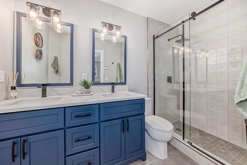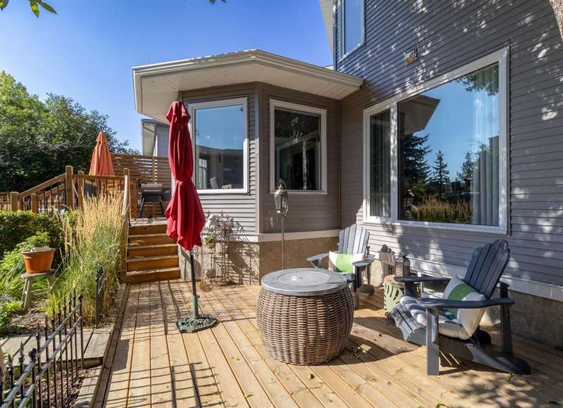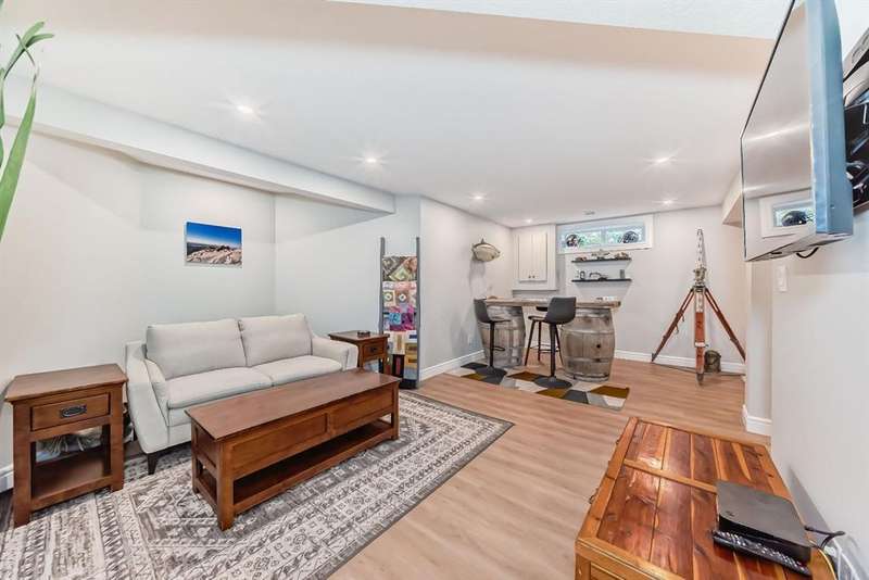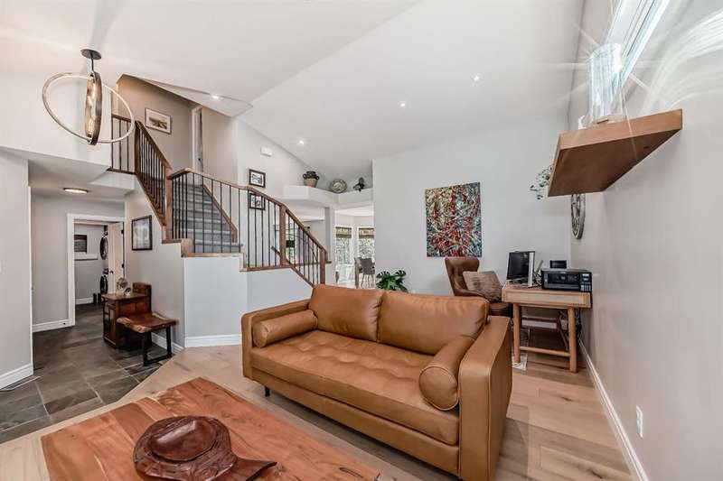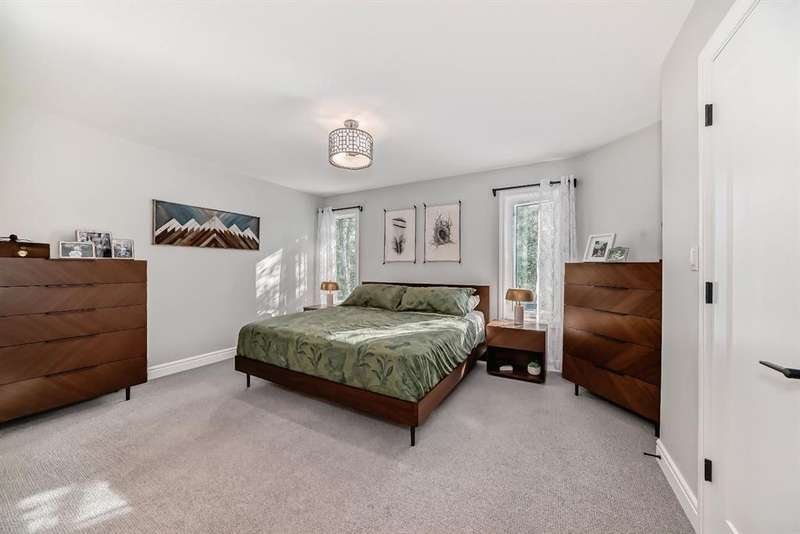 Look no further, this home is the best of both worlds, a fully renovated “new” home in the mature, highly sought-after community of Riverview. This home has been completely transformed from top to bottom within the past two years. Every detail has been upgraded, including: new electrical and panel, plumbing, high-efficiency furnace and ducting, 70-gallon hot water tank, water softener, Sinope automated water shut-off system, roof, siding, windows, fibreglass front door with European locks, flooring, knockdown ceilings, lighting, trim, doors, appliances, kitchen, bathrooms, deck, and more. Truly move-in ready with nothing left to do! The main floor welcomes you with wide-plank engineered hardwood, a bright front sitting room, and a European-inspired kitchen featuring matte quartz counters, high-end appliances, accent shelving, and a stylish backsplash. The cozy great room, complete with a gas fireplace and large south-facing windows, overlooks the beautifully landscaped yard. A custom-designed laundry space adds both function and style. Upstairs, a brand-new railing leads you to the luxurious primary retreat with a spa-like ensuite - heated floors, double quartz vanity, sliding barn door, glass shower with textured tile, and a walk-in closet with custom wood organizers. Two additional spacious bedrooms and a full bathroom complete the upper level. The lower level offers a large open rec space with Cat 5 wiring for gaming or streaming, storage galore, and potential to add another bedroom. The attached garage has been upgraded with Polyaspartic flooring, fresh paint, and new lighting. Outside, enjoy a private and mature yard with garden beds, a tiered deck, and plenty of space for kids and pets. Located in the highly desirable Riverview community, you’ll love immediate access to pathways along the Bow River, nearby parks, schools, shopping, and even walking distance to the golf course. Don’t miss this rare opportunity—a fully renovated home in one of Cochrane’s most established communities won’t last long!