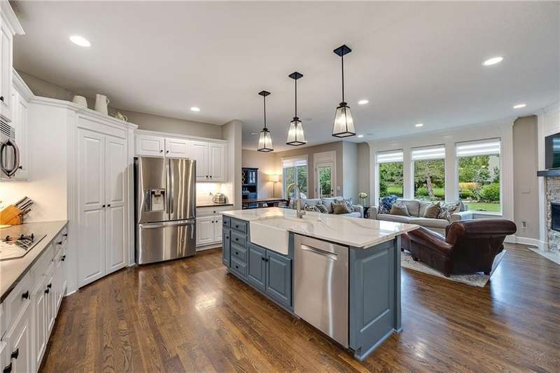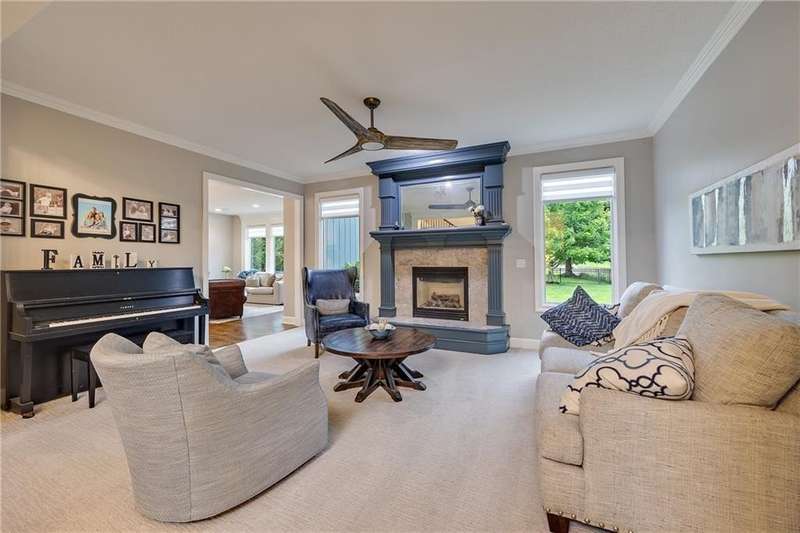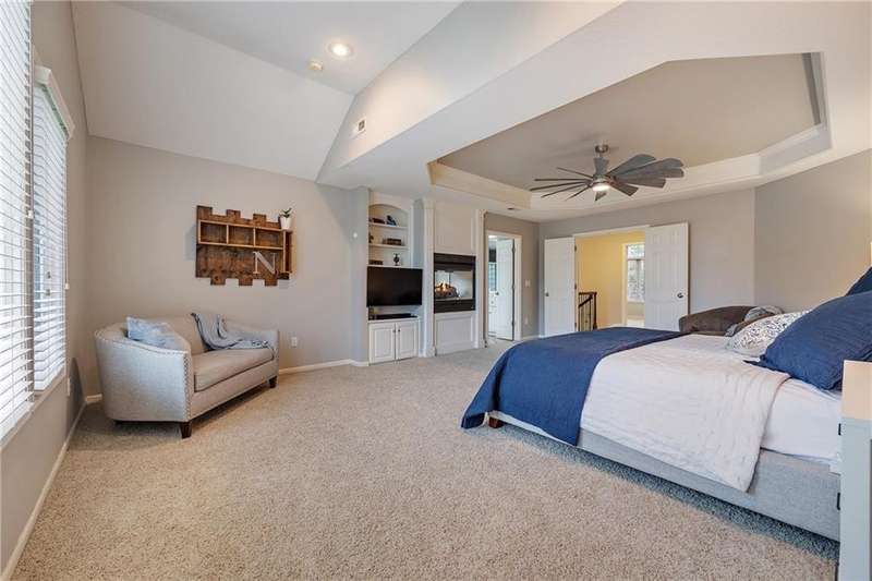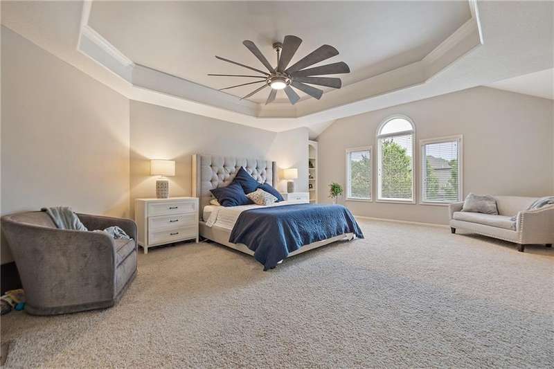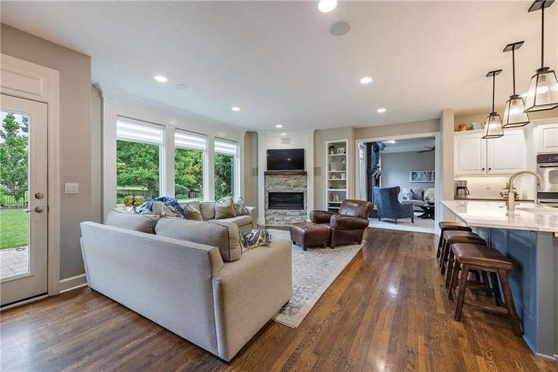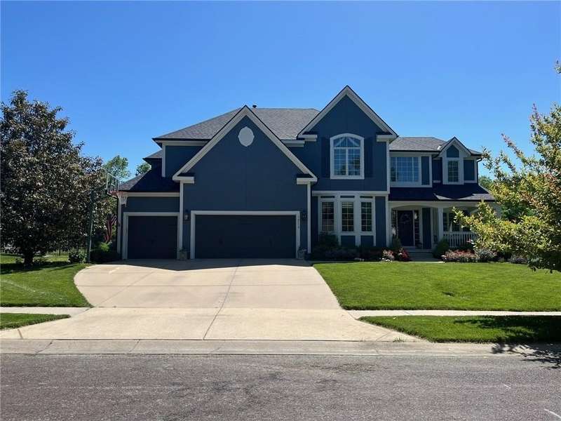Enjoy this spacious two-story home tucked away in Windsor Hills private cul-de-sac with the perfect backyard for entertaining or grilling out with the family and pets. Fully fenced yard with large mature trees offers a serene and peaceful outdoor experience. Excellent front curb appeal with stucco front and wraparound front porch. Recently remodeled interior on the main level, beautiful hardwoods, newer carpeting, white kitchen cabinets with quartz countertops, soft gray walls and new high traffic stair carpet. This J.L.Jones Homes, floor plan features two main level office spaces or a formal dining room / playroom / craft room in addition to the great room, open concept kitchen and breakfast room large enough for a farm table. Upstairs primary suite has an extra extended sitting room with see-through fireplace to the primary bath with large soaker tub, double vanities and spacious vaulted ceiling. Three additional bedrooms upstairs with two additional baths. The home has a finished lower level with large great room and non-conforming fifth bedroom plus plenty of spaces for storage. Enjoy the Windsor Hills neighborhood located in the South part of Overland Park at 143rd and Switzer great location near shopping and the new Bluhawk shopping, Deanna Rose City Park, Overland Park Soccer Complex soccer and easy access to Highway 69. Award winning Blue Valley Schools.