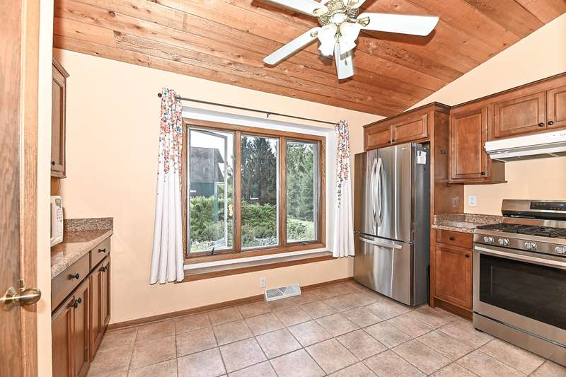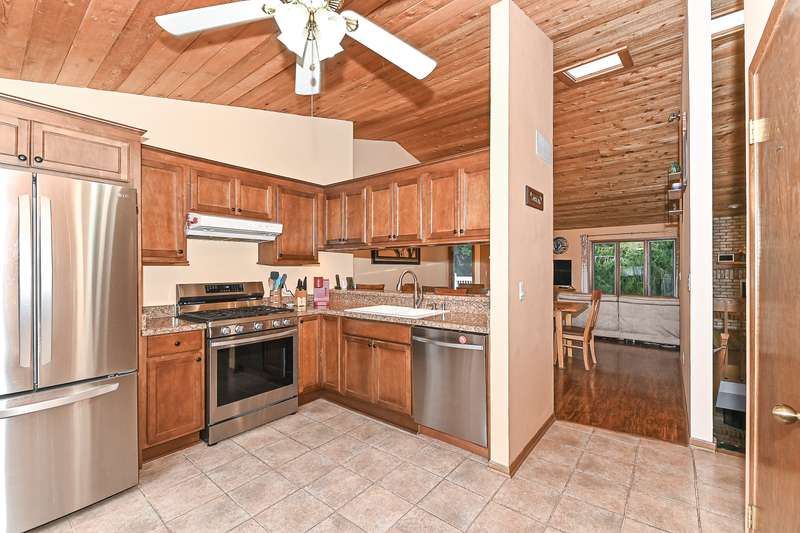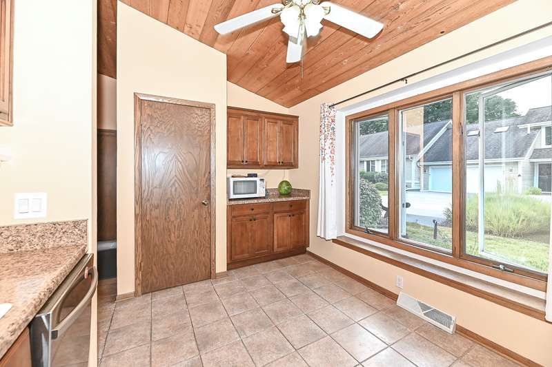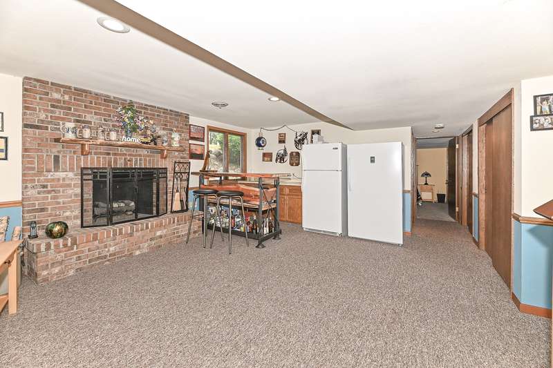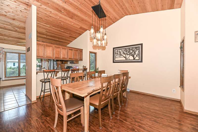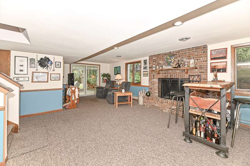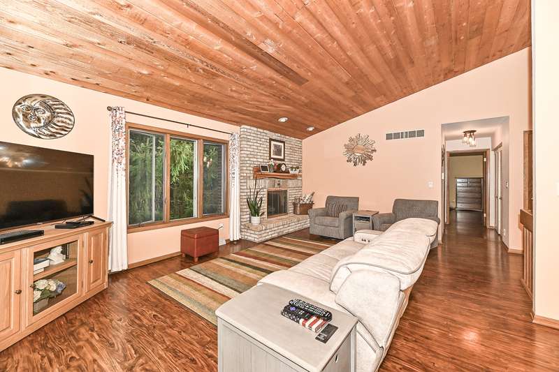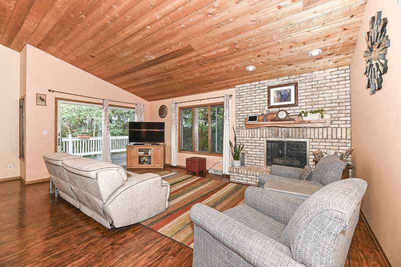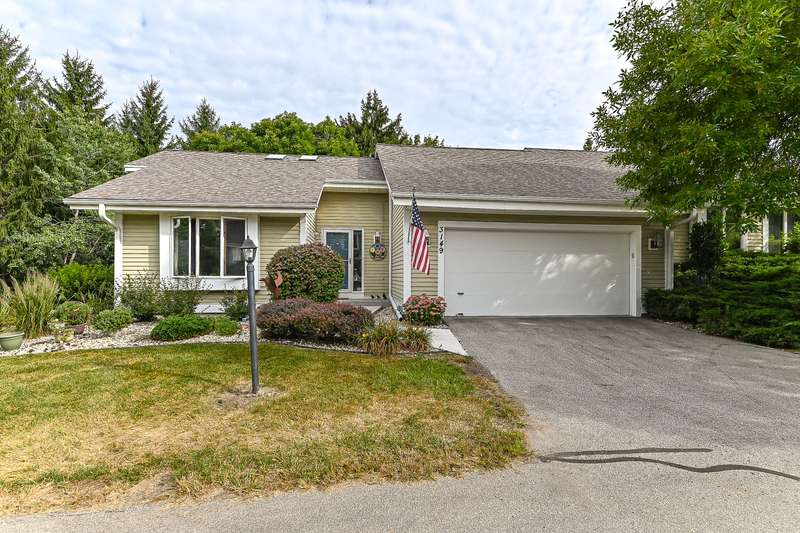 Discover this 3 bed, 2.5 bath ranch-style condo with private entry, perfectly designed for comfort and convenience. The main floor features a primary suite with ensuite, laundry, and a spacious living room with vaulted ceilings, gas fireplace, and access to an oversized deck. The kitchen offers stainless steel appliances, while the 2-car attached garage boasts an epoxy floor. The finished lower level includes a family room with second fireplace, wet bar, two bedrooms, and a full bath. Best of all, enjoy peaceful views from the screened-in porch. End unit setting provides privacy in a beautiful location!