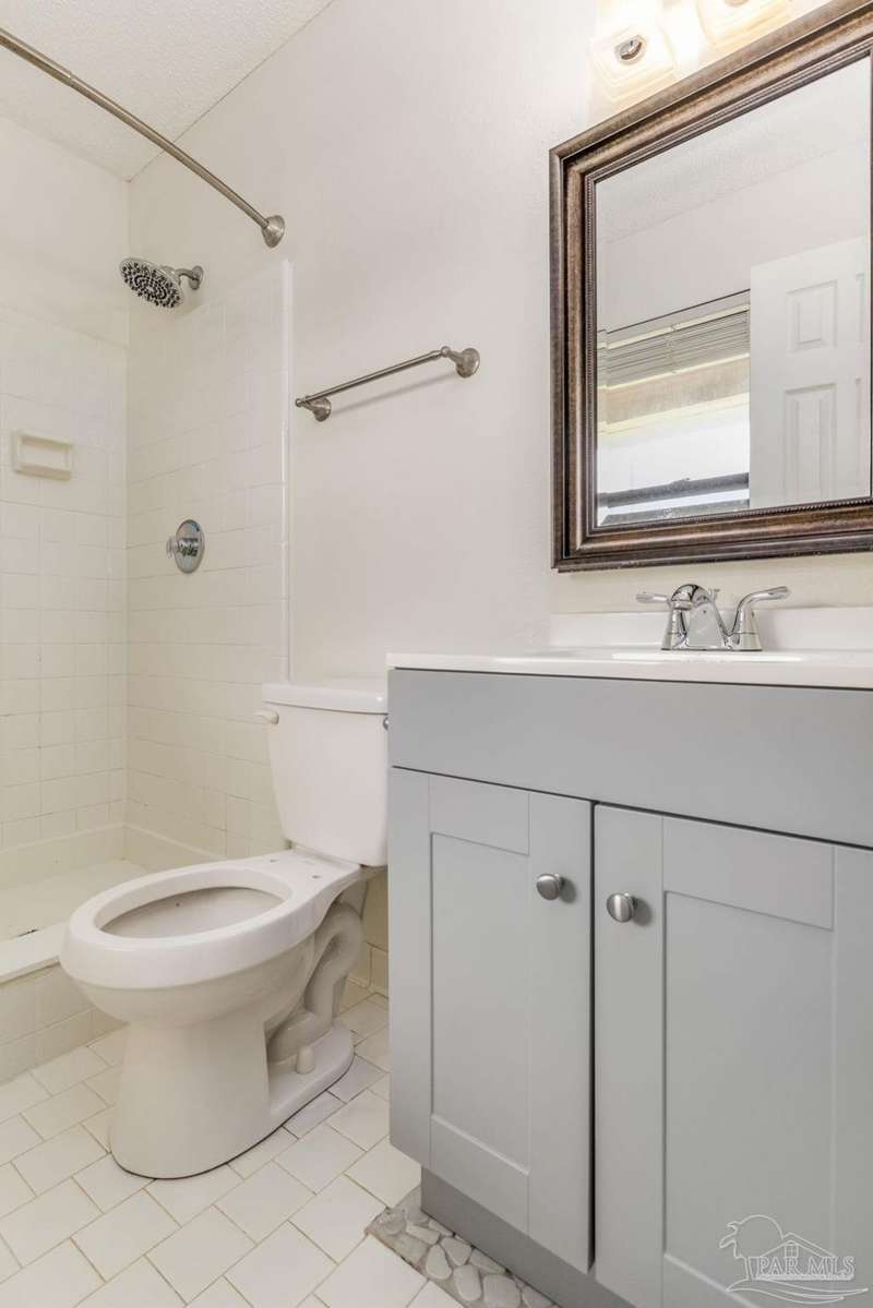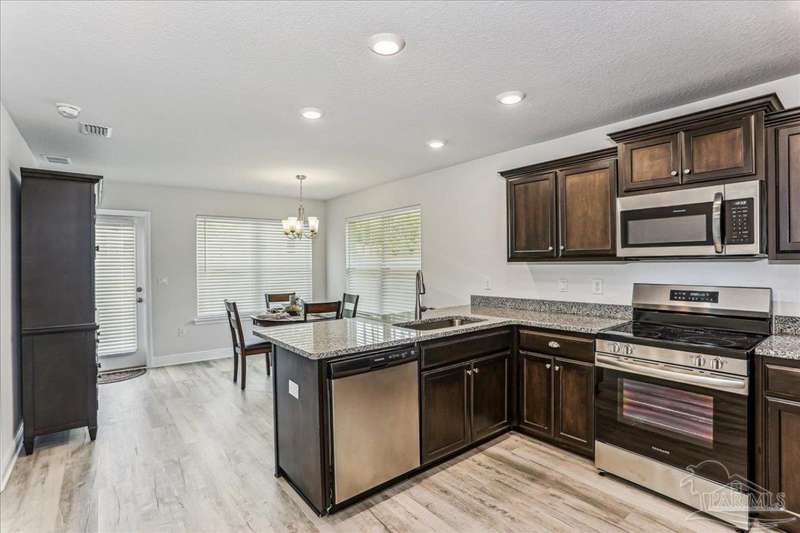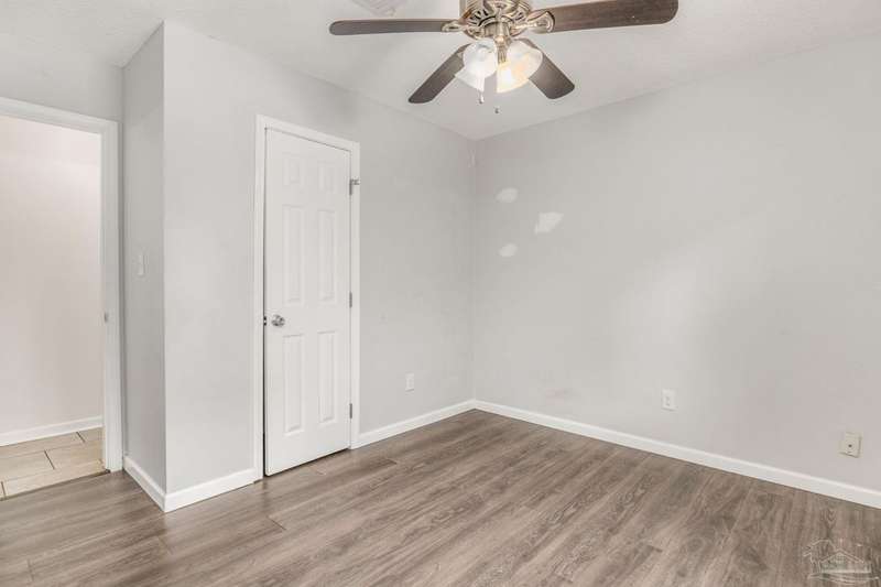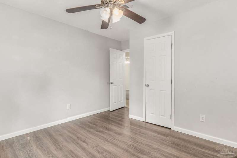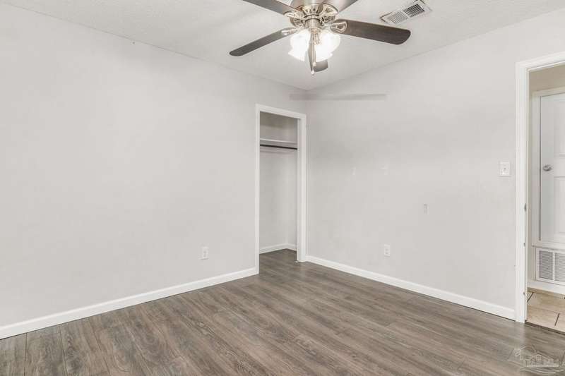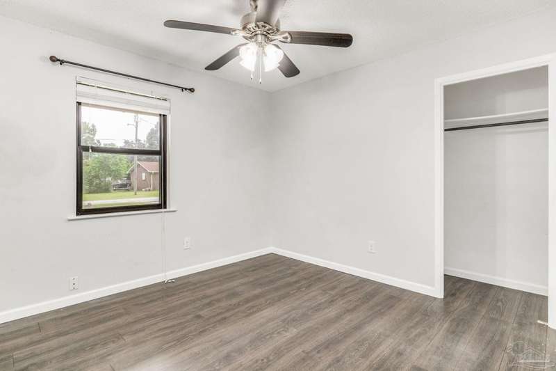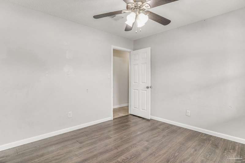 Fall in love with this Cantonment charmer! Known for its highly rated schools, convenient location near Navy Federal Credit Union, medical centers, and easy airport access, Cantonment offers the perfect balance of community and convenience. Sip your morning coffee on the covered front porch, then pull right into the attached garage. Inside, sunshine fills an open layout with easy-care tile floors in the main areas, no carpet anywhere. The spacious dining area flows into a streamlined galley kitchen with stainless-steel appliances and warm wood cabinetry with laminate countertops. Just off the kitchen, the living room is perfect for movie nights or the big game and opens to a flexible window-lined bonus sunroom, with direct backyard access for effortless indoor-outdoor living. The private primary suite features a tiled walk-in shower and a single vanity. Three additional bedrooms offer LVP flooring, ceiling fans, and generous closets, and they share a second full bath with a tiled tub/shower combo. Outside, enjoy a fenced backyard ideal for pets, play, or relaxing, plus an open patio for weekend BBQs or quiet mornings with coffee. Fresh interior paint completes the move-in appeal, this home is ready when you are!