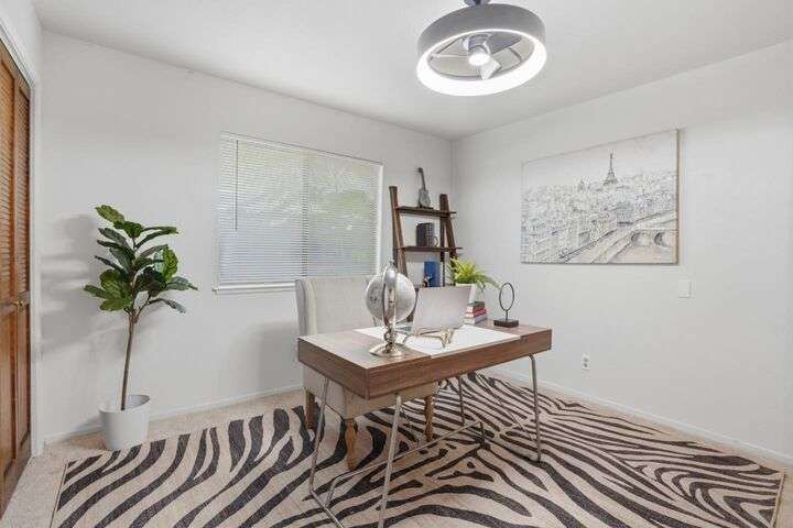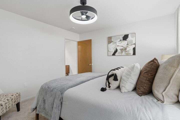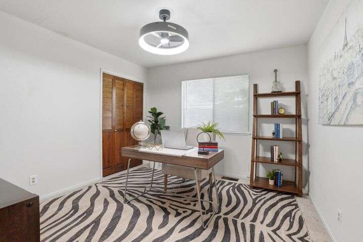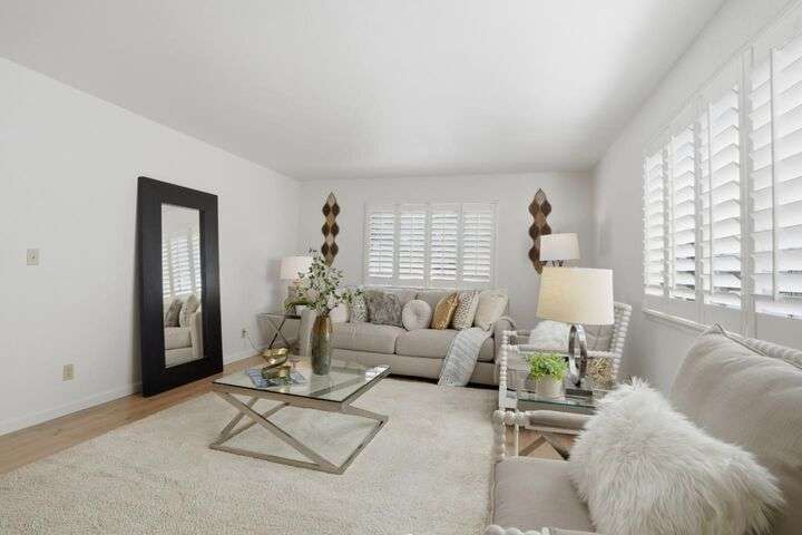Tucked off the main road, this inviting home blends comfort, space, and modern convenience. Step inside to a sunlit living room with louvered shutters and rich honey-toned wood floors, offering flexibility for your favorite furniture setup. The adjoining family room features a charming fireplace and skylight that brighten the space year-round. The kitchen impresses with stainless steel appliances, generous counter space, and warm wood cabinetry, perfect for both casual meals and entertaining. Bedrooms are cozy with plush carpeting and ceiling fans, while the updated hall bath adds a modern touch. The spacious primary suite feels like a private retreat, complete with a stylish bathroom and a large walk-in closet. Convenient indoor laundry with built-in storage adds everyday ease. The paved front yard and detached garage make maintenance simple. Enjoy nearby Baylands Nature Preserve, Ravenswood Open Space, and easy access to Hwy 101, Stanford, Meta, and downtown Palo Altos dining and shops. A wonderful blend of value, location, and livability, ready for its next chapter.