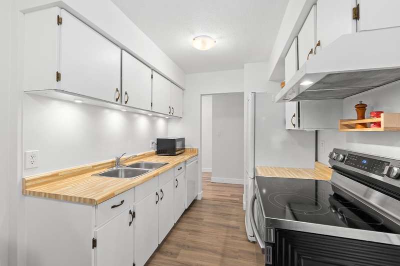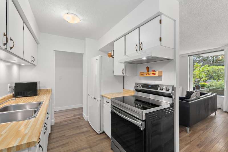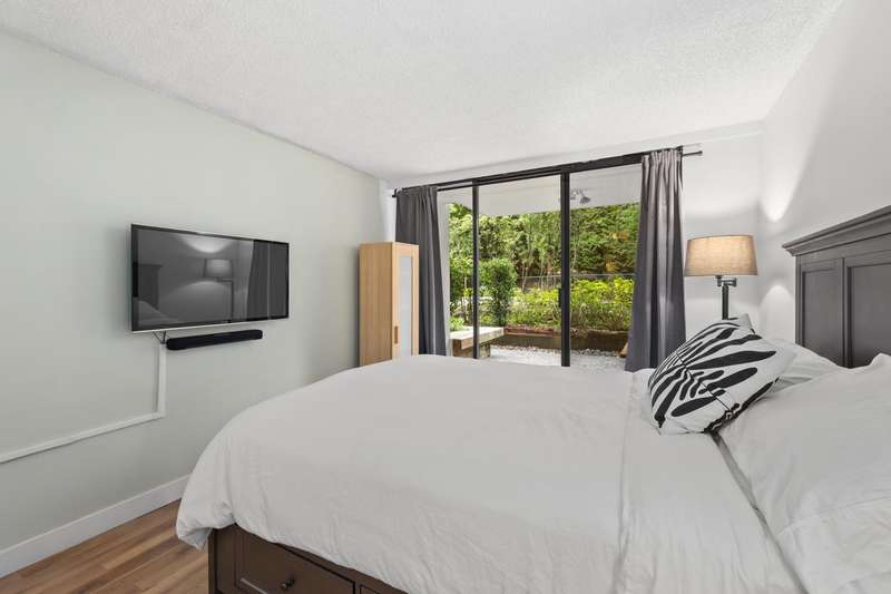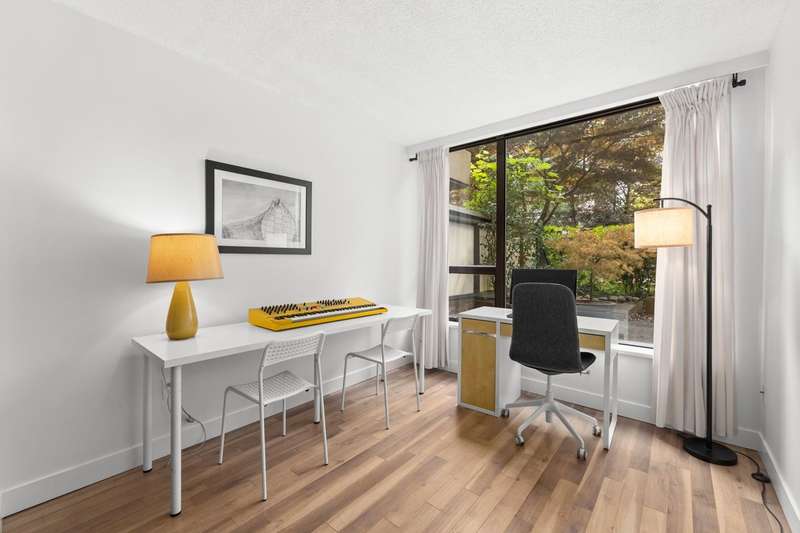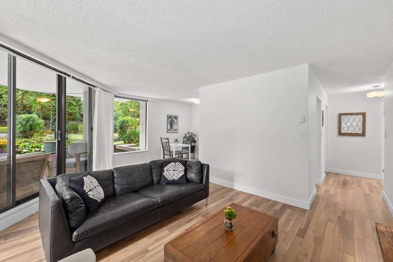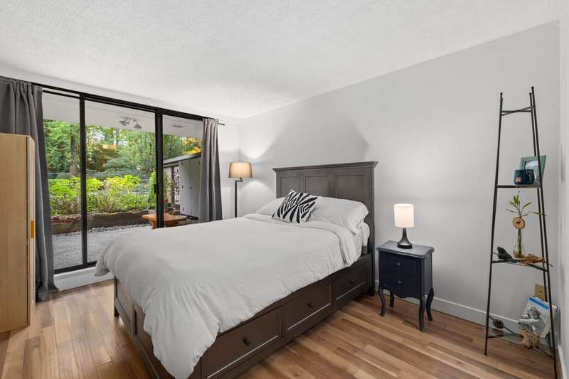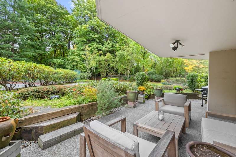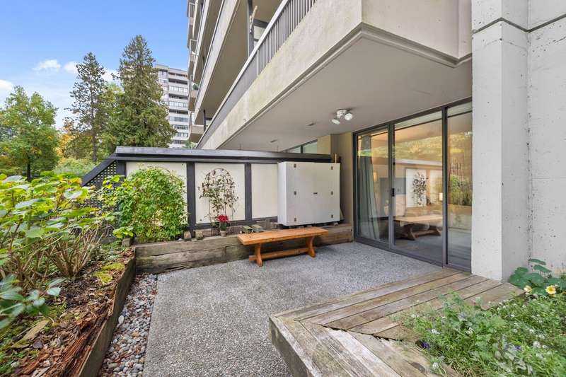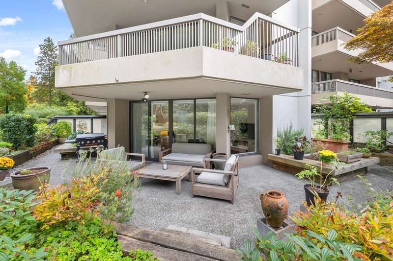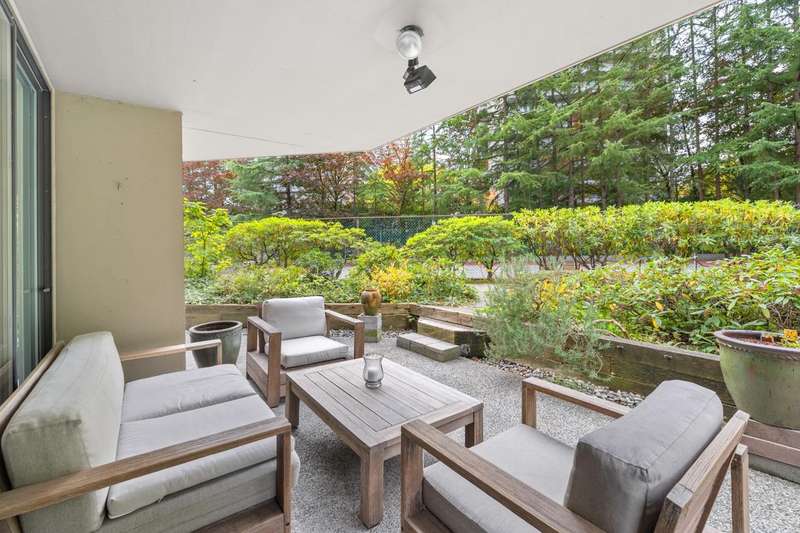 Tranquil living, embraced by nature! This pristine corner, garden suite occupies the premiere location in the building, surrounded by lush greenery in a vibrant setting. The 800+ sf wrap-around balcony feels like your own private park, perfect for morning coffee, summer BBQs or a bit of planting in the sunshine. Floor-to-ceiling windows bring the outside in, creating a seamless connection to the surroundings. Inside, the spacious layout offers flexibility for a home office or an expanded dining area, while both bedrooms are generously sized for comfort & relaxation. Anola (by Bosa), a well cared for concrete building, sits in a quiet community just steps from Brentwood Mall, SkyTrain, parks and more. Calm, comfort, and convenience come together in one exceptional retreat.