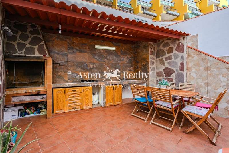 We present exclusively this excellent property located in first sea line in the neighbourhood of Puerto de Santiago, Tenerife south, 38686. This property has been refurbished a few years ago, it has 240 m2 built and 168 m2 useful developed in two floors, plus a basement/garage of 70 m2 which also has an extra room with window. On the first floor we find its main living room, with access to its front terrace, a bedroom, a complete bathroom and the independent kitchen with access to its large semi-covered back terrace which has a kitchen, barbecue and enough space for family gatherings.