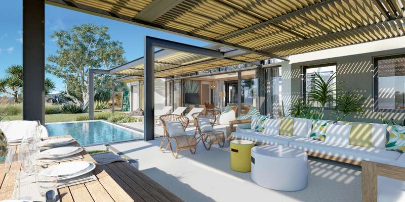 This elegant 204 m² villa is nestled within a prestigious golf estate on Mauritius’s West Coast, offering an exceptional lifestyle framed by the dramatic Black River Mountain Range and the crystal-clear waters of the Indian Ocean. Situated on a generous 2,101 m² plot, this residence is part of a highly sought-after luxury development that blends natural beauty, vibrant multicultural living, and sustainable, timeless design. Open to both Mauritian citizens and non-citizens, the purchase of this villa includes a residence permit, making it an attractive opportunity for international buyers seeking a dream home or investment in Mauritius. The estate celebrates sustainable architecture and showcases the craftsmanship of local artisans, incorporating bioclimatic design principles to ensure each villa harmonizes perfectly with its lush surroundings. Spanning over 73 hectares, this master-planned community will feature 220 upscale villas, each thoughtfully positioned to offer breathtaking views of the championship golf course or tranquil lagoon. All villas are sold off-plan and must comply with the strict architectural guidelines set by JFA Architects, ensuring aesthetic harmony and environmental respect throughout the estate. Phase 1 is progressing well, with active construction and strong interest from early buyers. The first nine holes of the championship golf course are complete and open for play, setting the tone for a premium lifestyle combining sport, leisure, and nature. This phase also includes 81 luxury villas and residential plots, alongside a modern clubhouse designed for relaxation and social connection. Residents will enjoy privileged access to the estate’s exclusive Golf and Beach Resort, as well as two nearby five-star resorts operated by the developer. A private boat park further enhances the coastal lifestyle, providing residents with the opportunity to explore the island’s stunning lagoons and embrace seamless land-to-sea living. Whether you seek a primary residence, holiday retreat, or investment opportunity, this villa presents a rare chance to join a world-class, nature-integrated community on one of the Indian Ocean’s most beautiful coastlines. Contact Diane Watkins, Property Consultant, to arrange a private viewing and discover the exceptional lifestyle that awaits you within this prestigious golf estate on Mauritius’s West Coast. Contact DIANE WATKINS – Property Consultant – to arrange a private viewing and discover the lifestyle that awaits.
