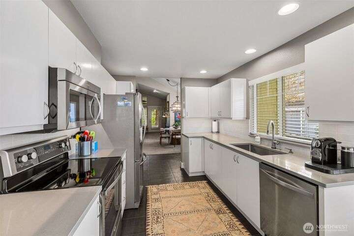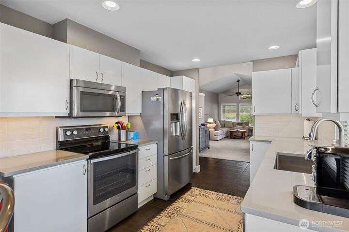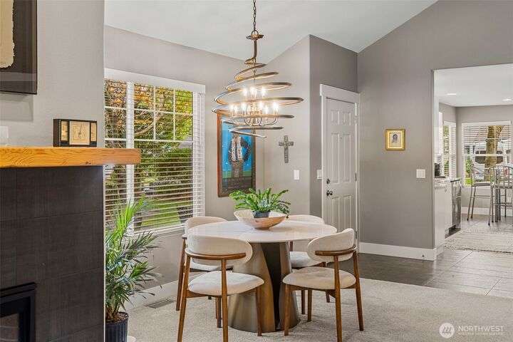 Find your dream home in the highly desirable gated community of Marina Pointe! This beautifully updated residence features three spacious bedrooms, two and a half elegant bathrooms, and a convenient two-car garage. Enjoy the luxury of a main floor primary suite, complete with a large walk-in closet and a stunning bathroom designed for relaxation. The inviting living room, featuring a cozy gas fireplace, flows effortlessly into the dining area, which is filled with abundant natural light. The well-appointed kitchen includes an eating nook and charming wood floors, making it perfect for gatherings. Step outside to your private covered patio that leads to a serene walking path and greenbelt along the river. You will LOVE coming home to this!!