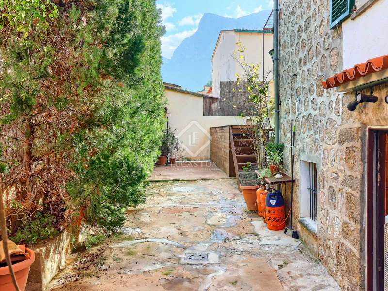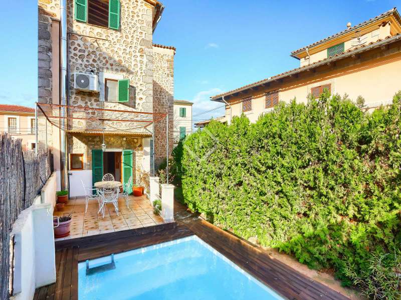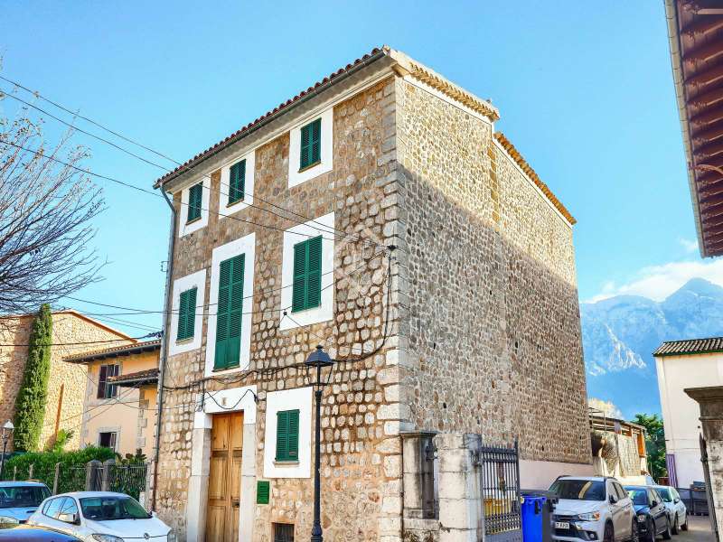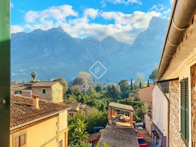 This charming property in Sóller offers a net living area of approximately 287 m², in addition to terraces, distributed across four levels. On the ground floor, one can find the entrance hall opening into a spacious kitchen with a dining area, which flows directly onto a terrace and the inviting swimming pool. The fist floor comprises three well-appointed bedrooms and a family bathroom. In the basement, a delightful, self-contained apartment featuring a living/dining area, an open-plan kitchen with access to the inner courtyard, a bedroom, and an en-suite bathroom. Constructed in the traditional Majorcan style, the property boasts classic terracotta flooring and exposed wooden beams, and is in excellent condition throughout. It is equipped with oil central heating and air conditioning (hot/cold), ensuring comfort year-round. The property is complemented by a large terrace with a pool, offering picturesque views of the surrounding mountains.