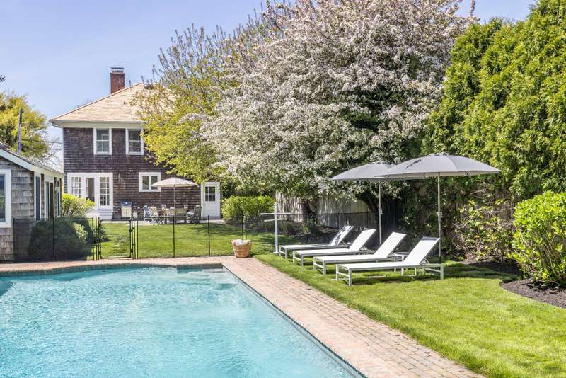 Nestled on a quiet street just steps from the heart of Southampton Village, this beautifully updated home combines charm with convenience. The light-filled interior features modern updates throughout, with two separate sitting areas leading to the kitchen and dining room overlooking the back yard. On the second floor, the house features three spacious bedrooms and two baths. The backyard is beautifully landscaped and private, including a spacious patio for outdoor dining and relaxation and a heated gunite pool. The property includes a charming pool house, complete with a comfortable sitting area and a full bathroom. This serene retreat offers the perfect blend of comfort, style, and summer fun, with easy access to world-class restaurants, boutique shops, and pristine ocean beaches-all just a stone's throw away.
