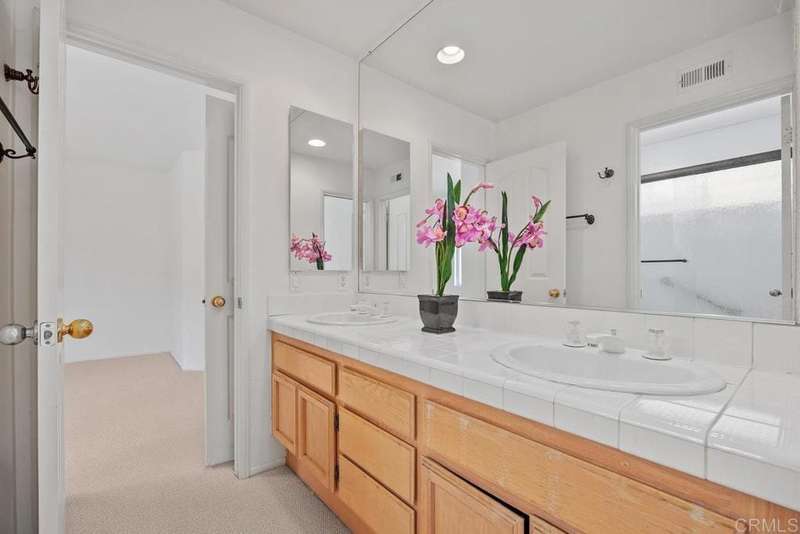Price Reduction! This spacious 4-bedroom, 3-bath home is located in the highly desirable community of Woodcrest Hills in Rancho Peasquitos. Featuring soaring vaulted ceilings, brand-new carpet, and a freshly painted interior, it offers a bright and welcoming feel throughout. The beautifully upgraded kitchen is perfect for any home chef, and energy efficiency abounds with owned solar and a Tesla Powerwall battery. From the backyard and patio, enjoy breathtaking views and unforgettable sunsetsan ideal setting for entertaining friends and family. Community amenities include a sparkling pool, tennis courts, and scenic green spaces. Outdoor enthusiasts will love the nearby Rancho Peasquitos Preserve, offering over 10 miles of trails. Low HOA fees of just $165 per month, convenient access to shopping, and a serene country feel while still being close to the city, this home truly offers the best of both worlds! *some photos are 'virtually staged'.