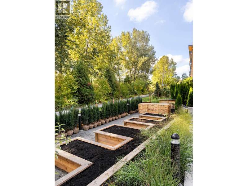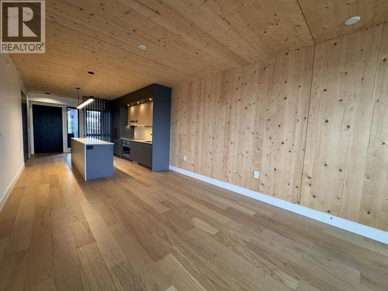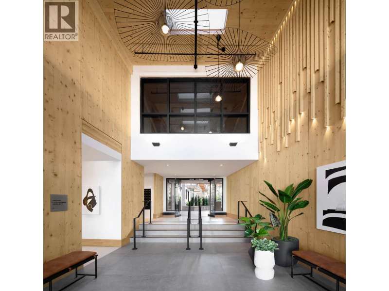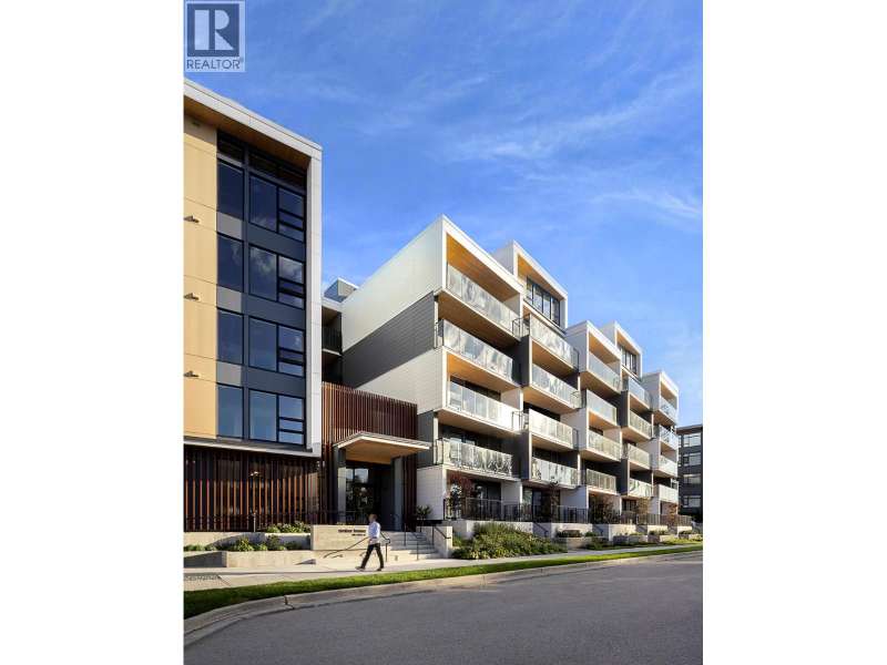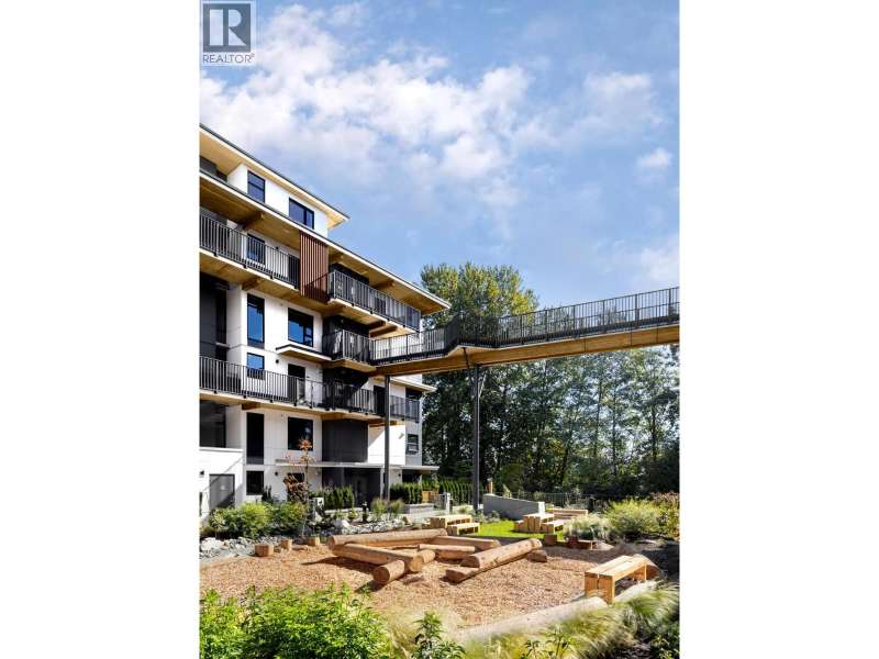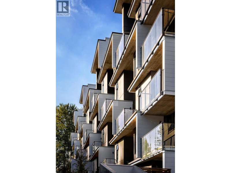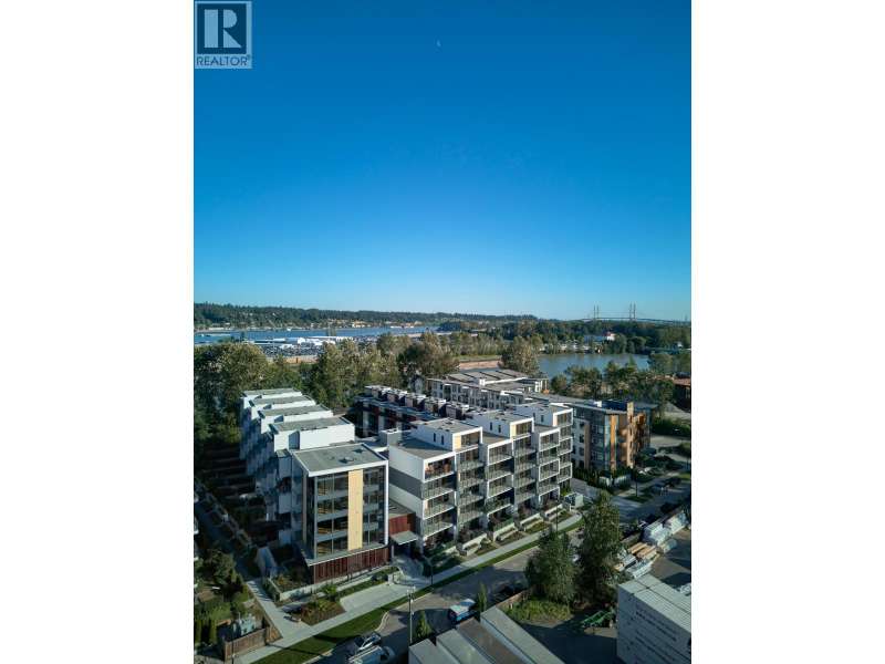NEW PRICING & MOVE-IN READY! This spacious 876 SF 1BR home at Timber House by Aragon offers modern, high-design living with only one shared common wall + a 205 SF balcony. Interiors feature exposed CLT panels, wide-plank oak floors, black roller blinds & A/C. The sleek kitchen includes integrated F&P + Smeg appliances, quartz counters, matte black hardware & built-in pantry with slide-out storage. Spa-inspired bath has heated floors, floating vanity with LED lighting. Building amenities include: a courtyard, gym, BBQ area, dog wash, garden area, 1 parking (EV-ready opt), 1 storage. Steps to the boardwalk, 12 min to DT New West, 30 min to YVR, 35 min to DT Van. OPEN HOUSE EVERY SAT TO MON 1-4PM OR BY APPT. (id:58403)