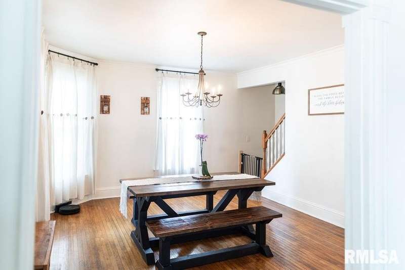 Updated 2-story home with 3 bedrooms, and 2 baths. This home is just one block from the Elmwood schools. Featuring beautiful hickory cabinets with an island and pantry, and is an eat-in kitchen. There is a large formal dining room that could have many uses. The living room has a gorgeous stone gas fireplace. Lots of hardwood flooring in this home also. vinyl windows throughout. Bathrooms are all updated. New Roof in 2012. Wonderful fenced back yard with fire pit, outdoor sink, patio. Also has a she shed or whatever you would want to use for, and has electricity. 1 1/2 garage. Older basement that walks out to back yard.
