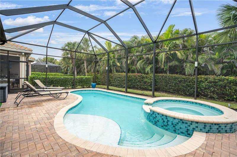 Exquisite Former Model Home - Prime Naples Location Step into luxury with this impeccably maintained, turnkey former model home, perfectly located just 6 miles from Naples' pristine beaches and minutes from the best shopping, dining, and entertainment in the area. This beautifully furnished 2-bedroom, 2-bathroom home with a den offers over-the-top comfort and style, designed for both relaxation and functionality. Enjoy outdoor living at its finest with a private pool and spa, surrounded by comfortable recliners and an outdoor kitchen with a TV - perfect for entertaining or unwinding. The enhanced landscaping, with lighting that illuminates the yard at night, creates an inviting and tranquil atmosphere. For added peace of mind, the home is equipped with hurricane shutters and an electronic Storm Smart screen on the lanai. Inside, you'll find high-end finishes throughout, including custom walk-in closets and his-and-her vanities in the primary suite. The garage is equally impressive with an epoxy floor and ample overhead storage. A buried 500-gallon propane tank and whole-house generator ensure you'll never be without power. Residents of this community also enjoy an array of first-class amenities, including tennis, pickleball, bocce, an indoor basketball court, a fully equipped gym, an aerobics room, and a game room. The social spaces are just as impressive, with a formal gathering room, a resort-style pool and spa, covered cabanas, a splash pad for kids, and a playground for family fun. This home is the epitome of luxury living, combining privacy, comfort, and high-end community amenities in one of Naples' most desirable locations. Don't miss out on the opportunity to experience it all! AVAILABLE FOR 2026 SEASON 3 MONTH MINIMUM or ANNUAL.