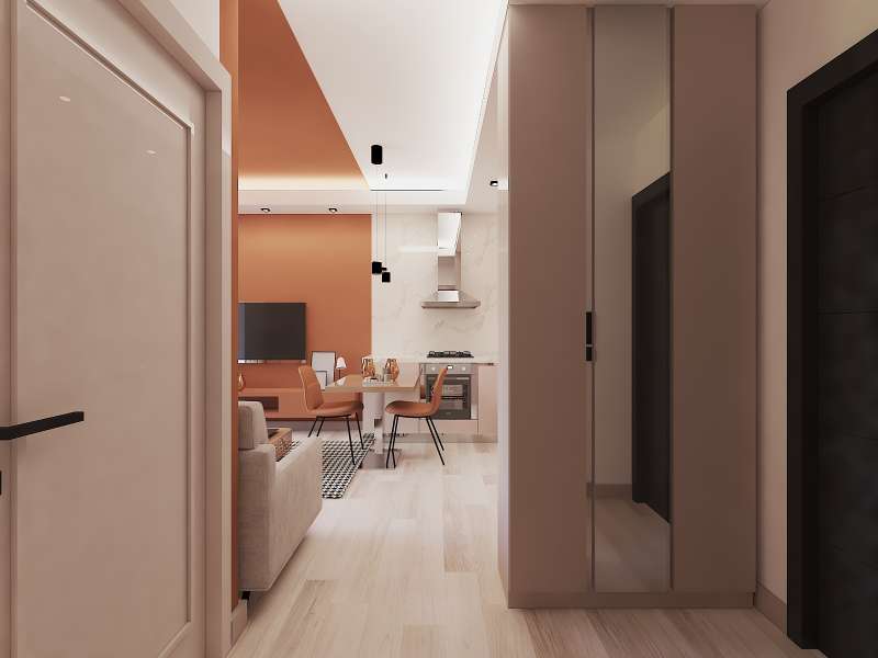 These 1-bedroom apartments consist of a living room, open-plan kitchen, bathroom, and balcony. They are equipped with a steel entrance door, video intercom, underfloor heating system, electric shutters, air-conditioning infrastructure, built-in wardrobe, kitchen appliances, and a central satellite TV system.
