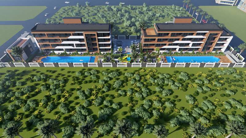 These apartments for sale in Antalya are located close to the airport, transportation options, and the beach. They are 190 m from the bus stop, 6.2 km from Antalya Airport, 7.6 km from Lara Beaches, 10.4 km from Terracity Shopping Mall, and 22 km from Land of Legends Theme Park.